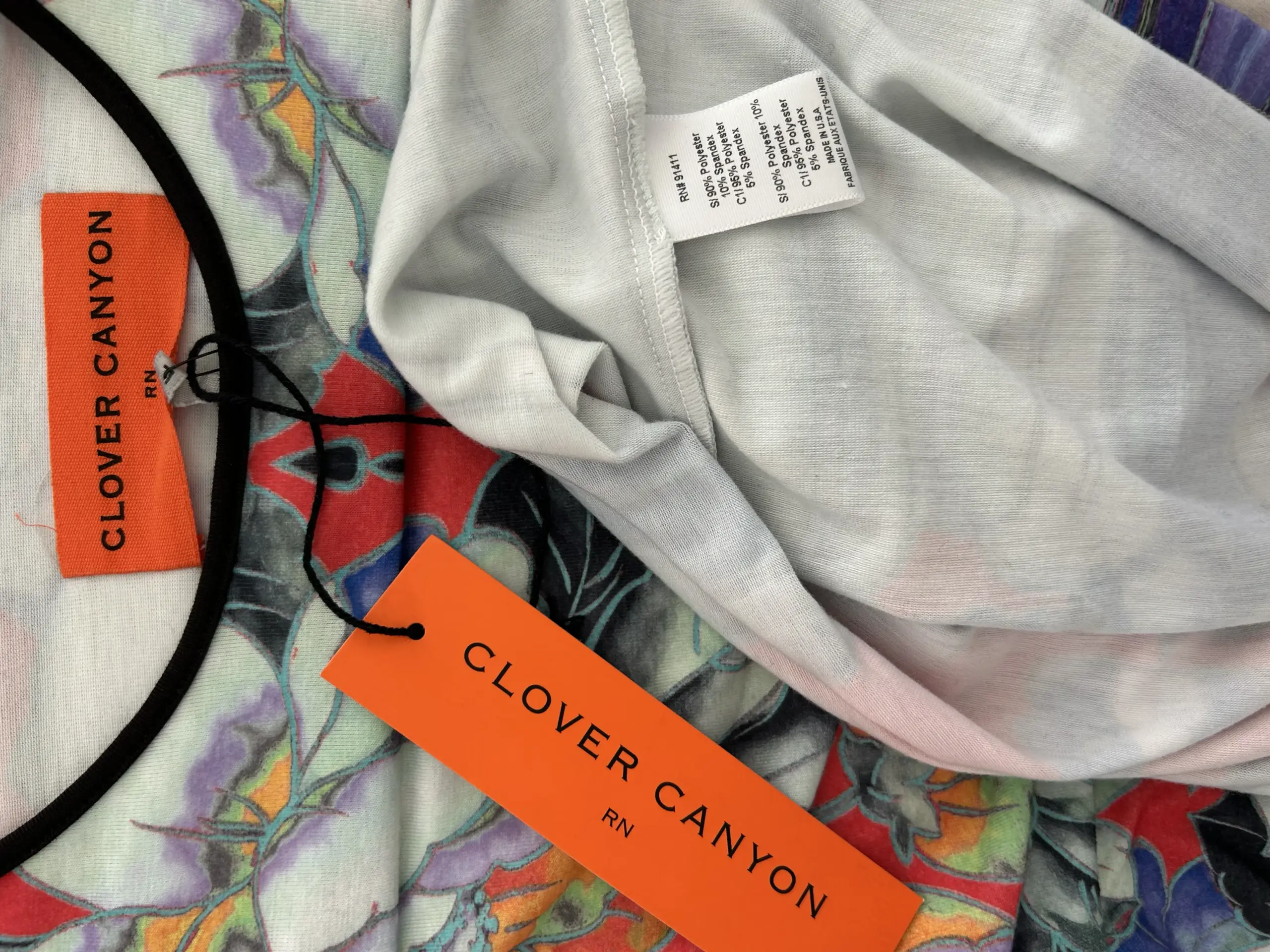 Clover Canyon blouse, 90% polyester, 10% spandex. Length: 67cm, bust 90cm.