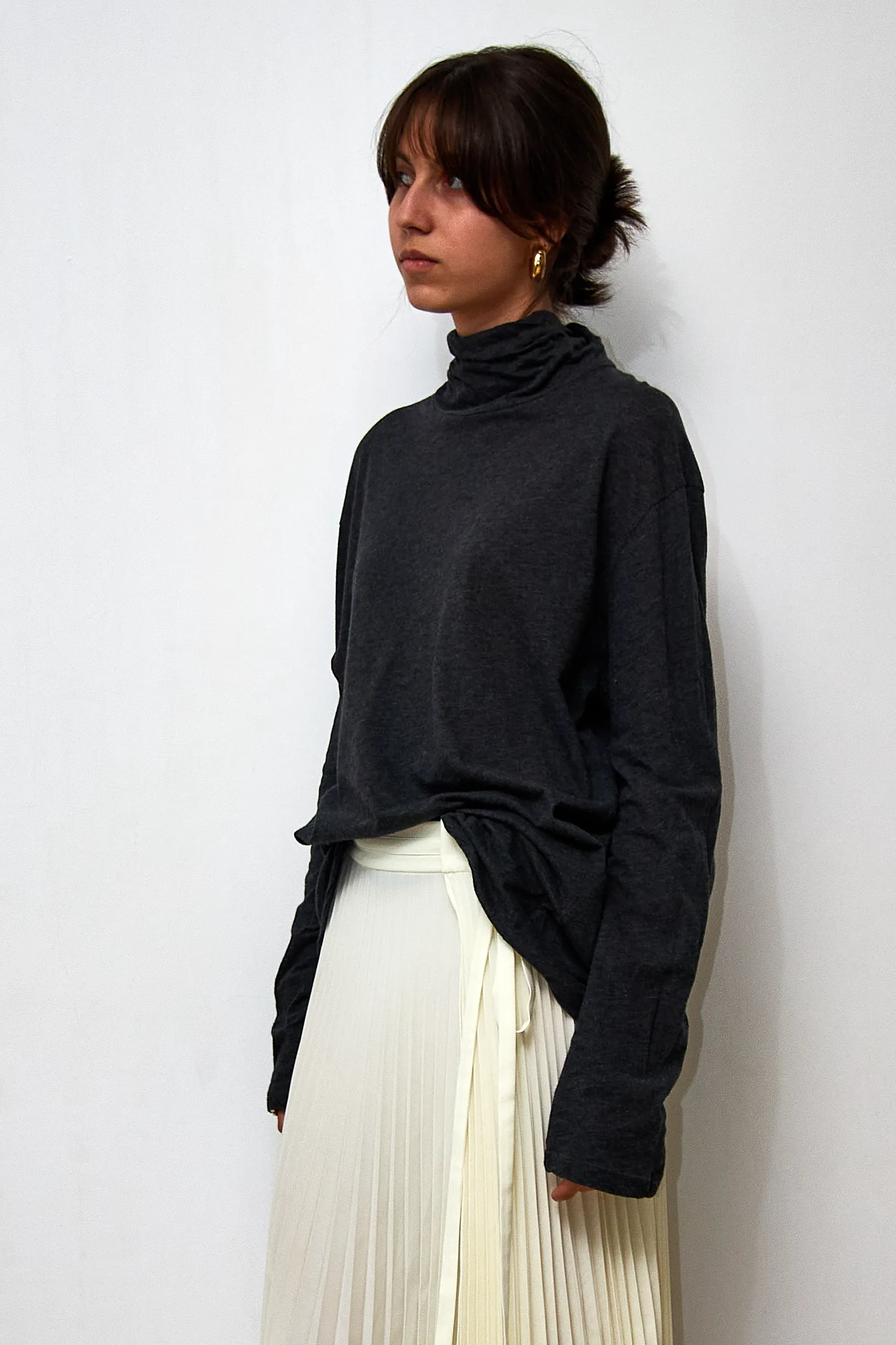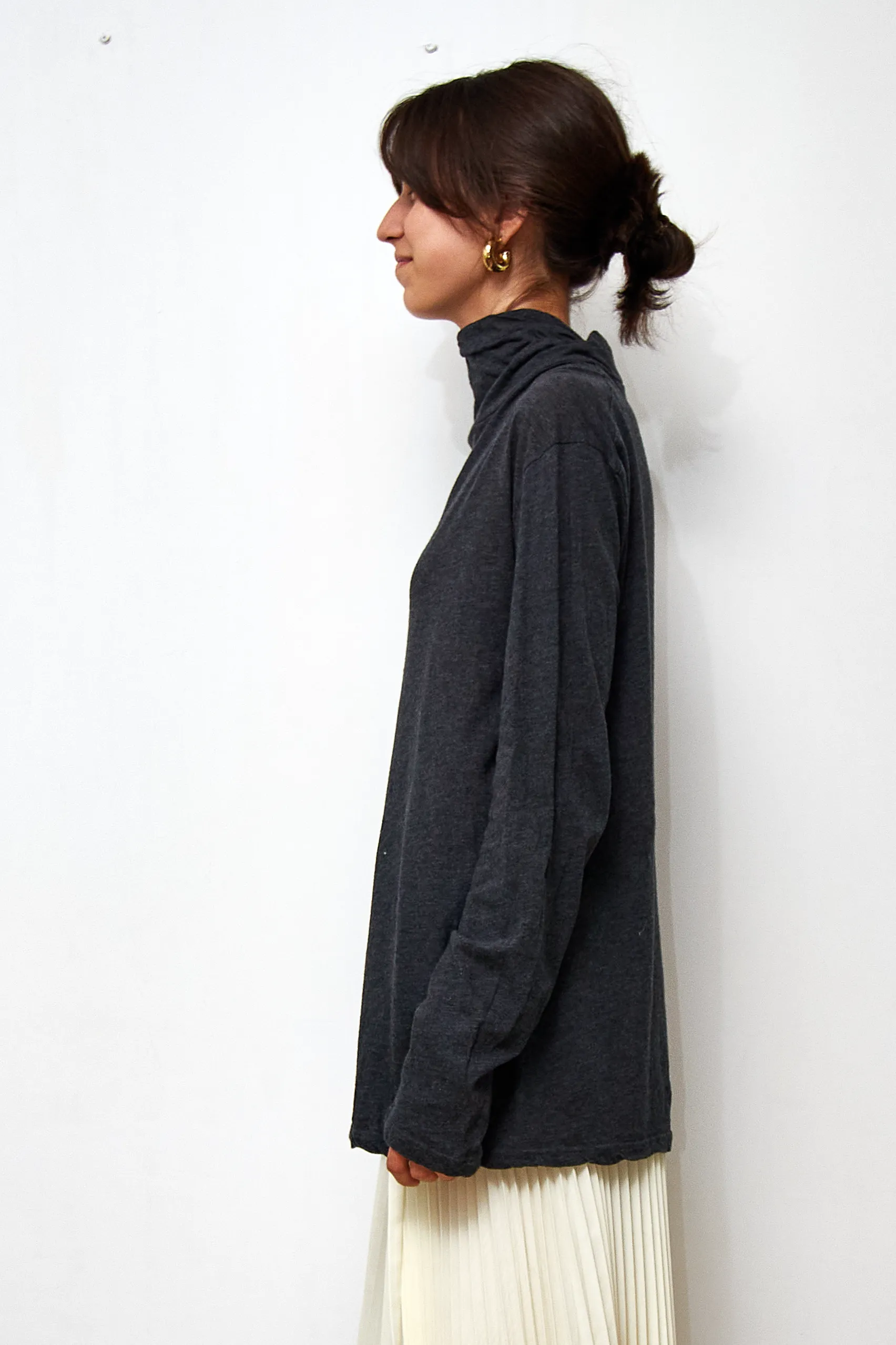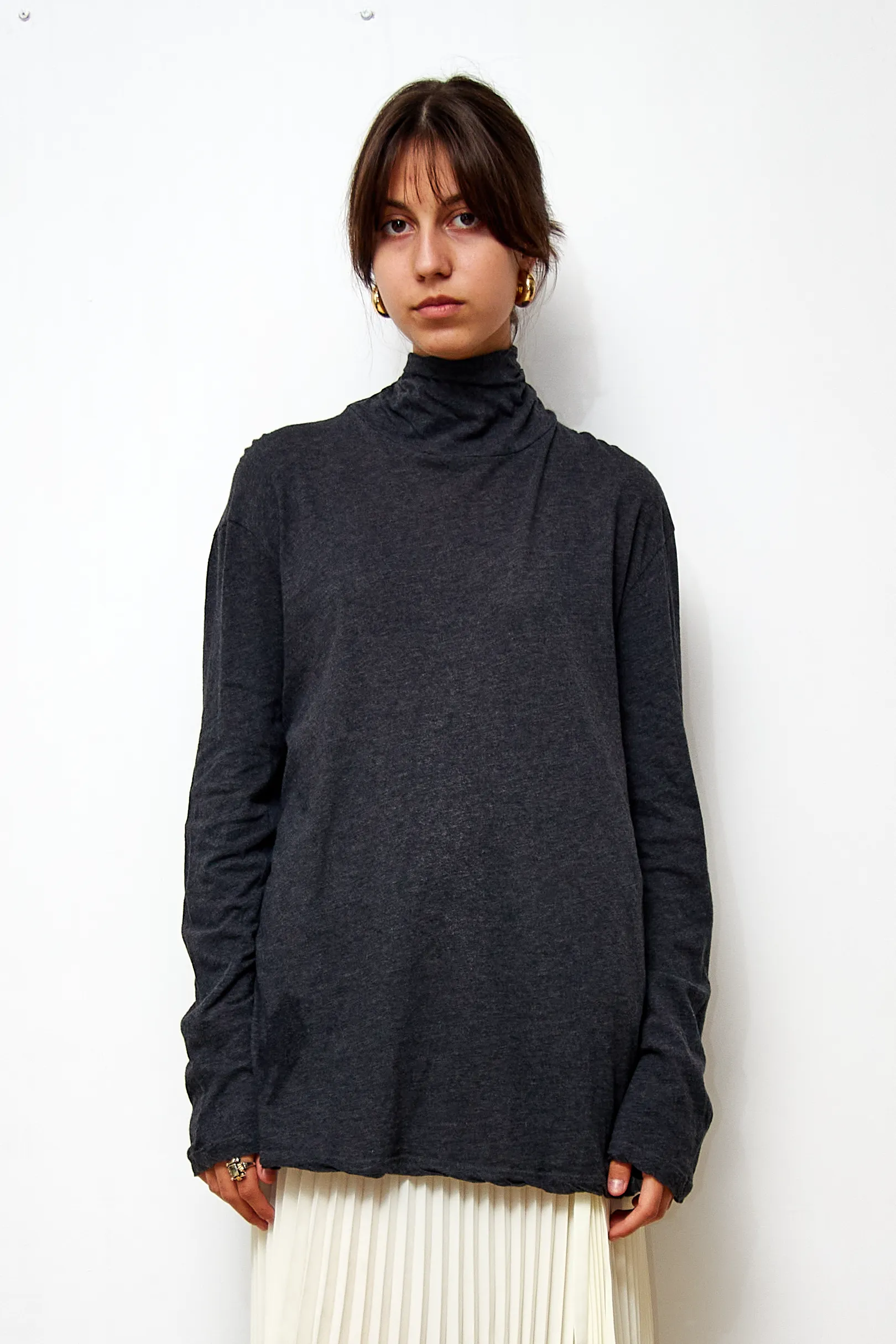 Delicate turtleneck in dark grey, 90% cotton, 10% cashmere. Length 70cm.