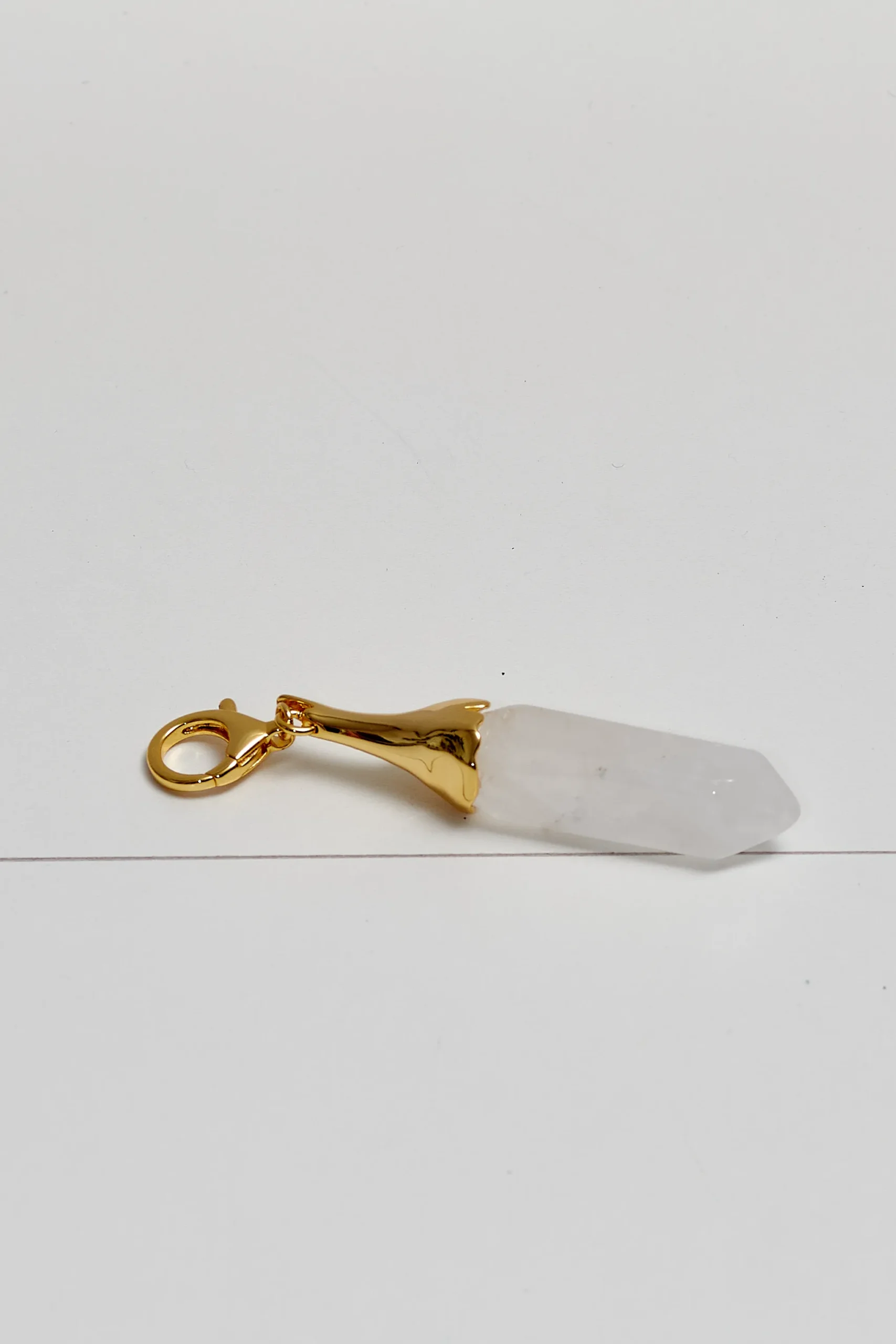 Semi-precious stone pandant charm made from gold-plated recycled brass and a clear quartz.