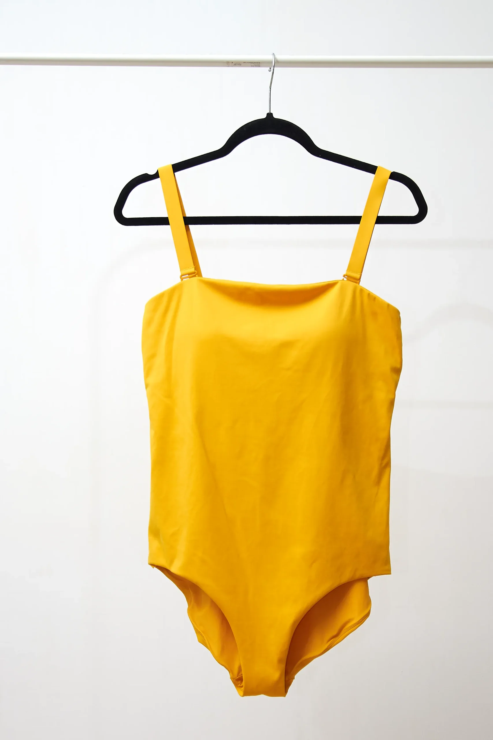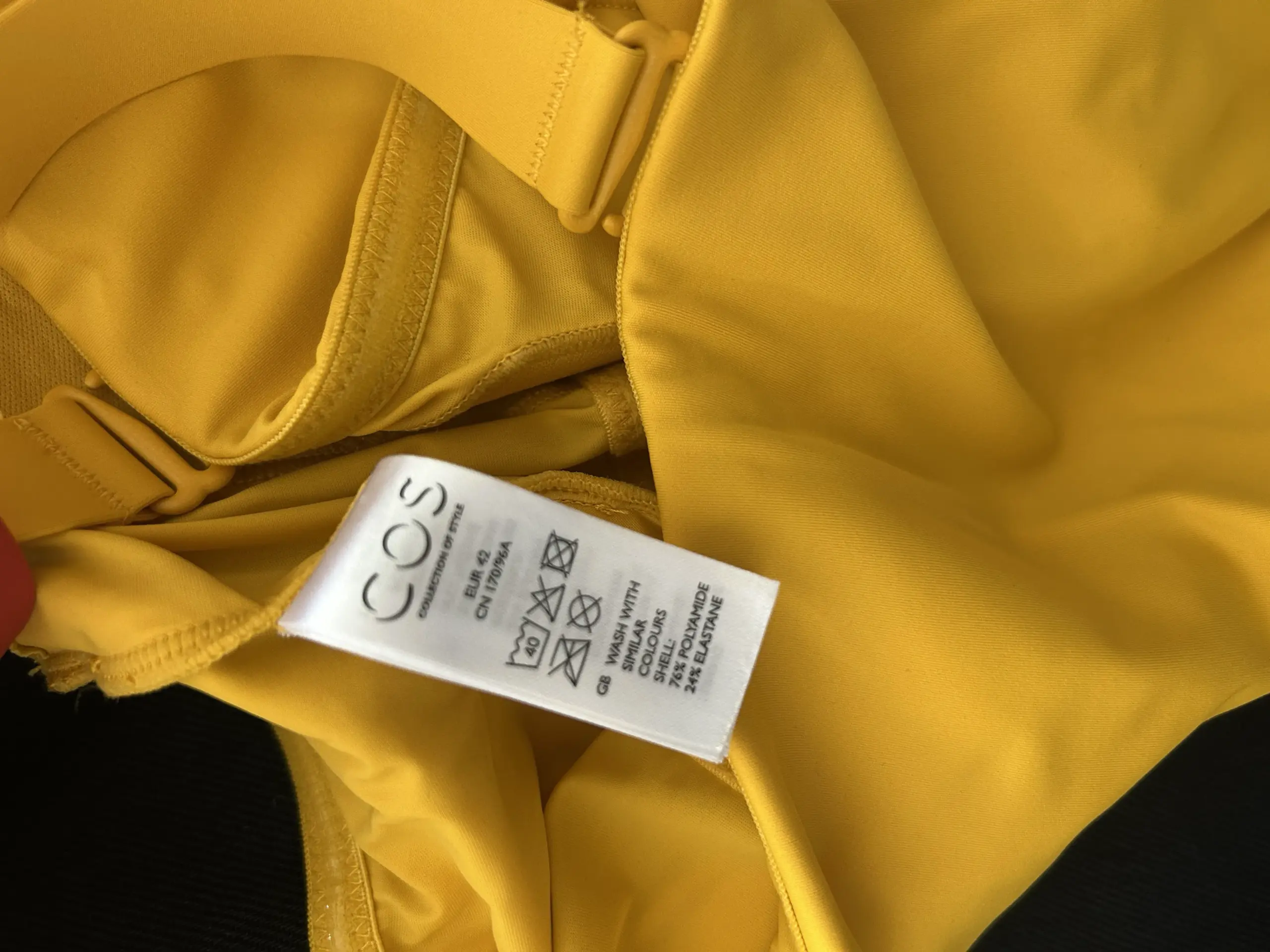 COS yellow swimsuit with removable straps. Shell: 76% polyamide, 24% elastane. Lining: 73% poliamide, 27% elastane.