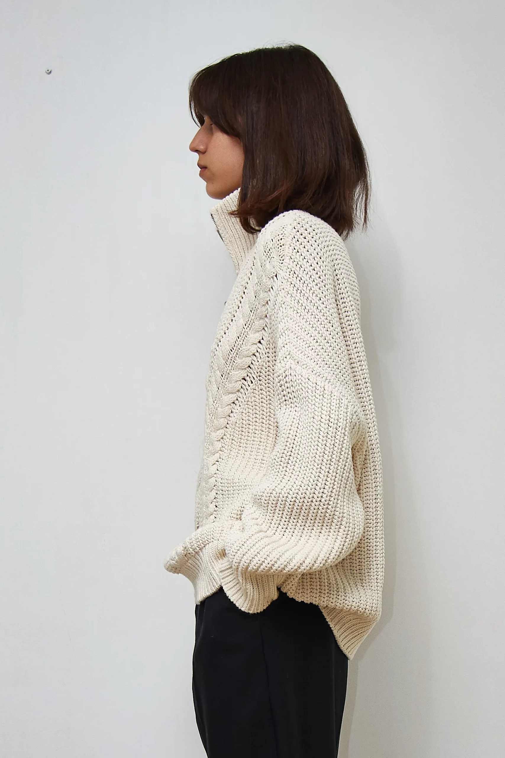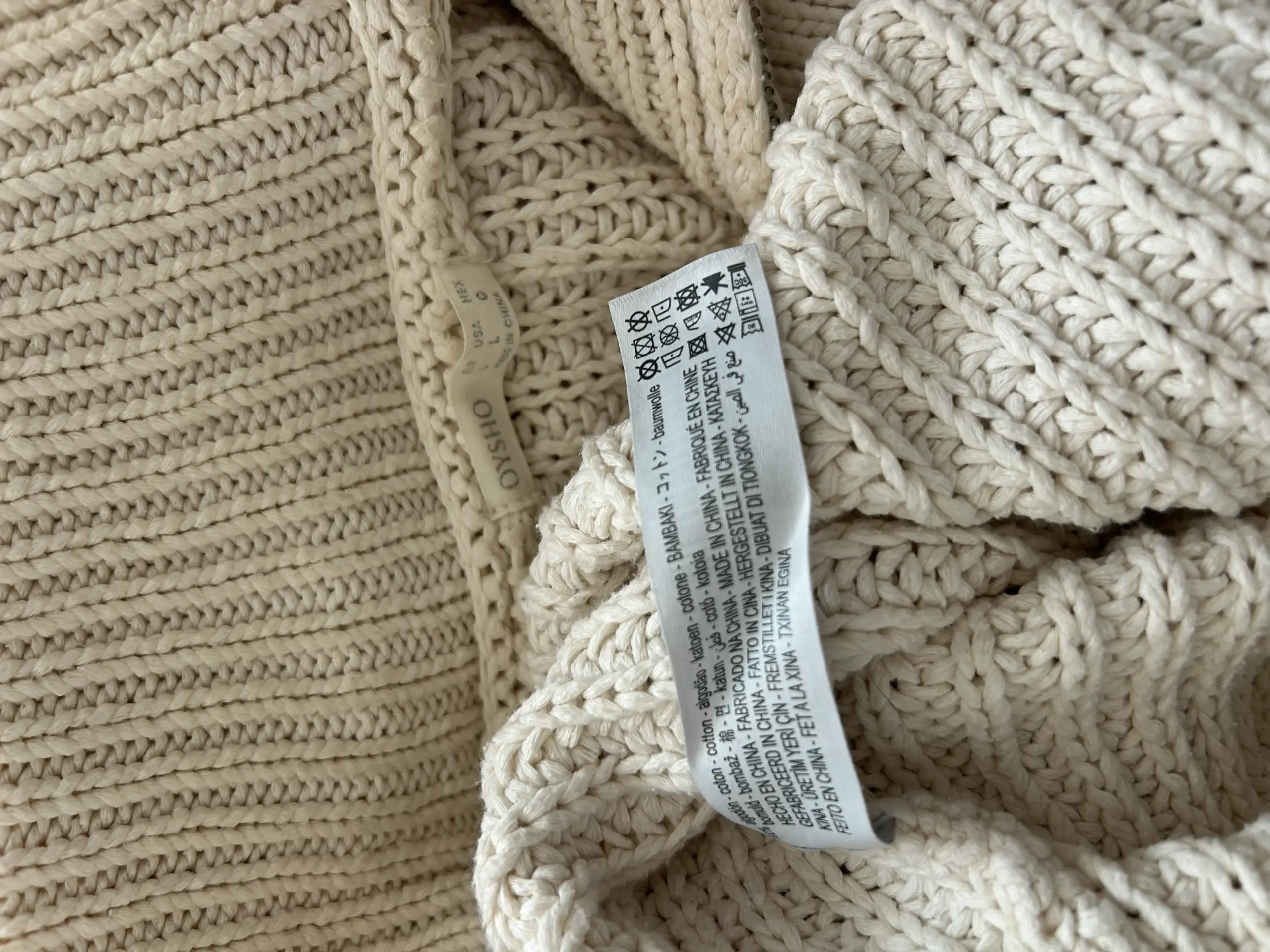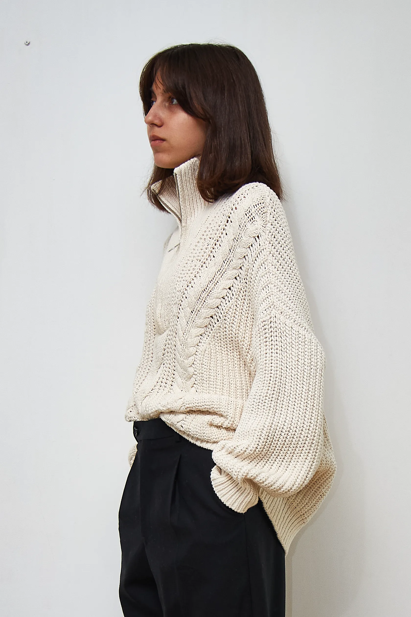 Cotton sweater in offwhite with metallic zipper, oversized. Length 70cm.