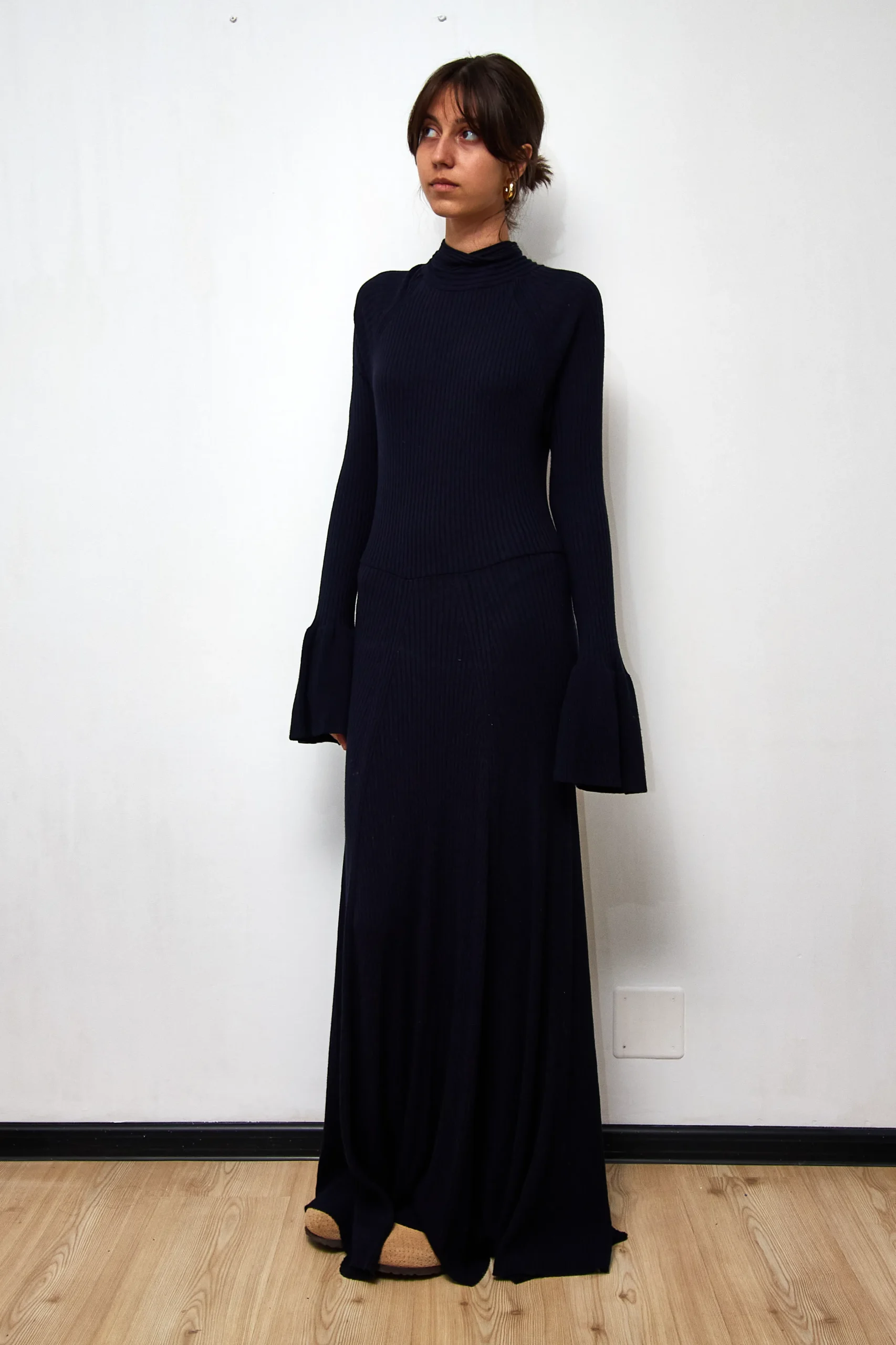 H&M Knit dress in navy, 92% viscose, 8% polyester, length 150cm.
