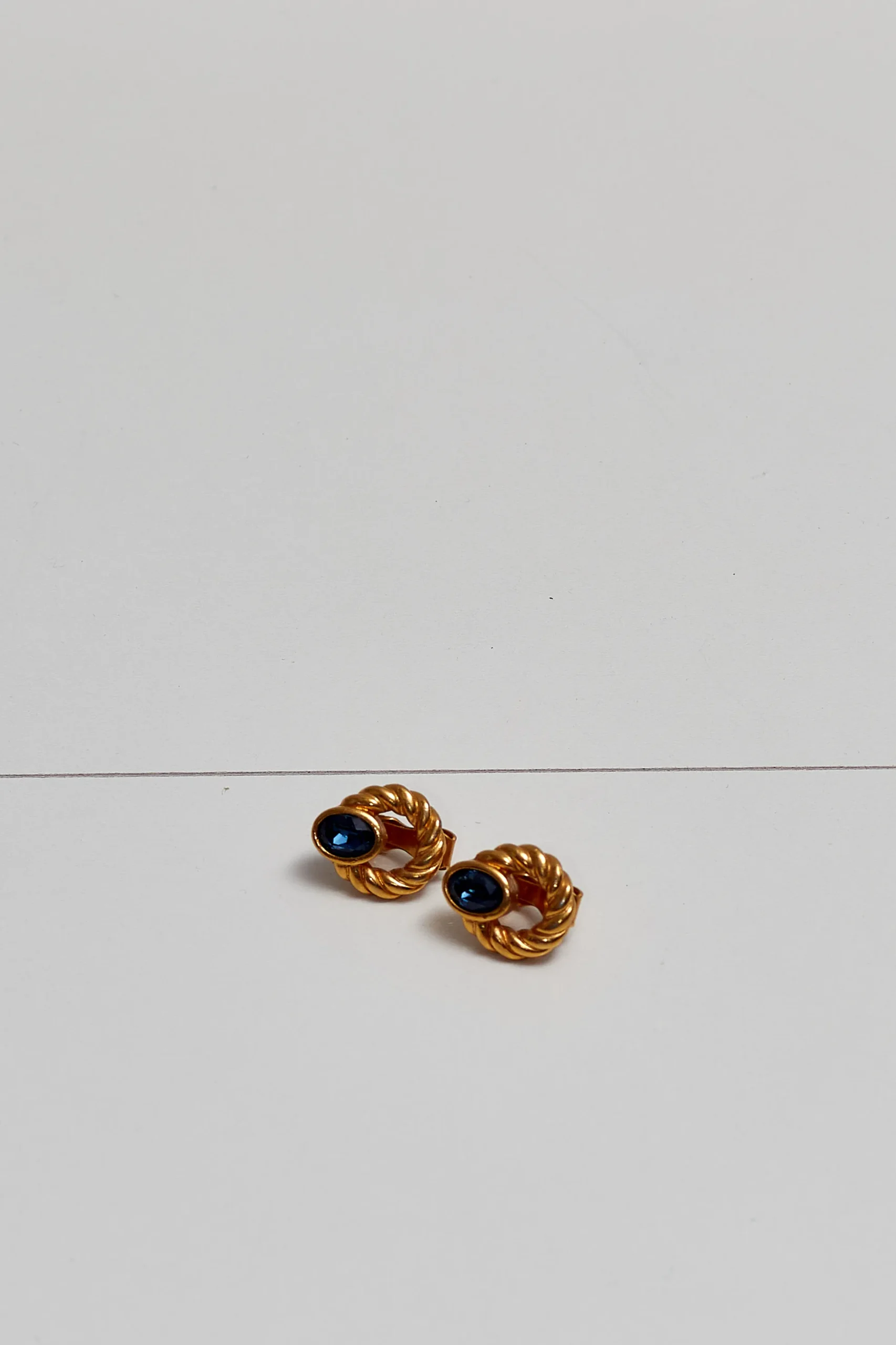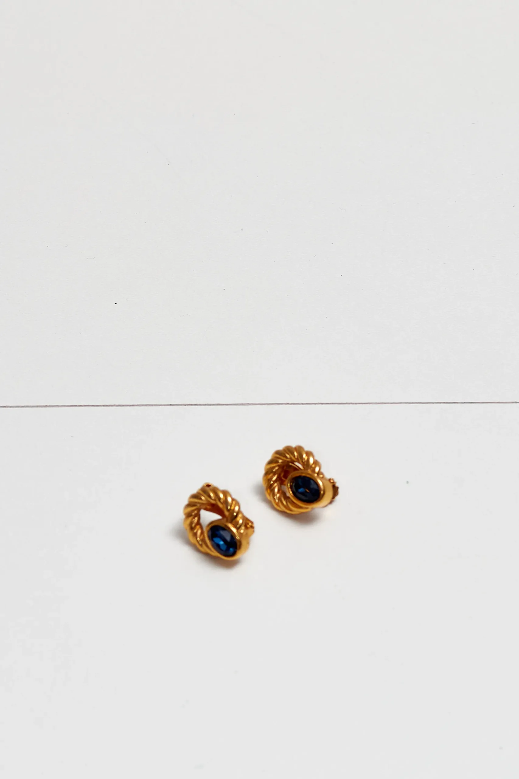 Lanvin Vintage gold-plated clip-on earrings with blue crystal. L: 1,5cm, H:1,8cm.