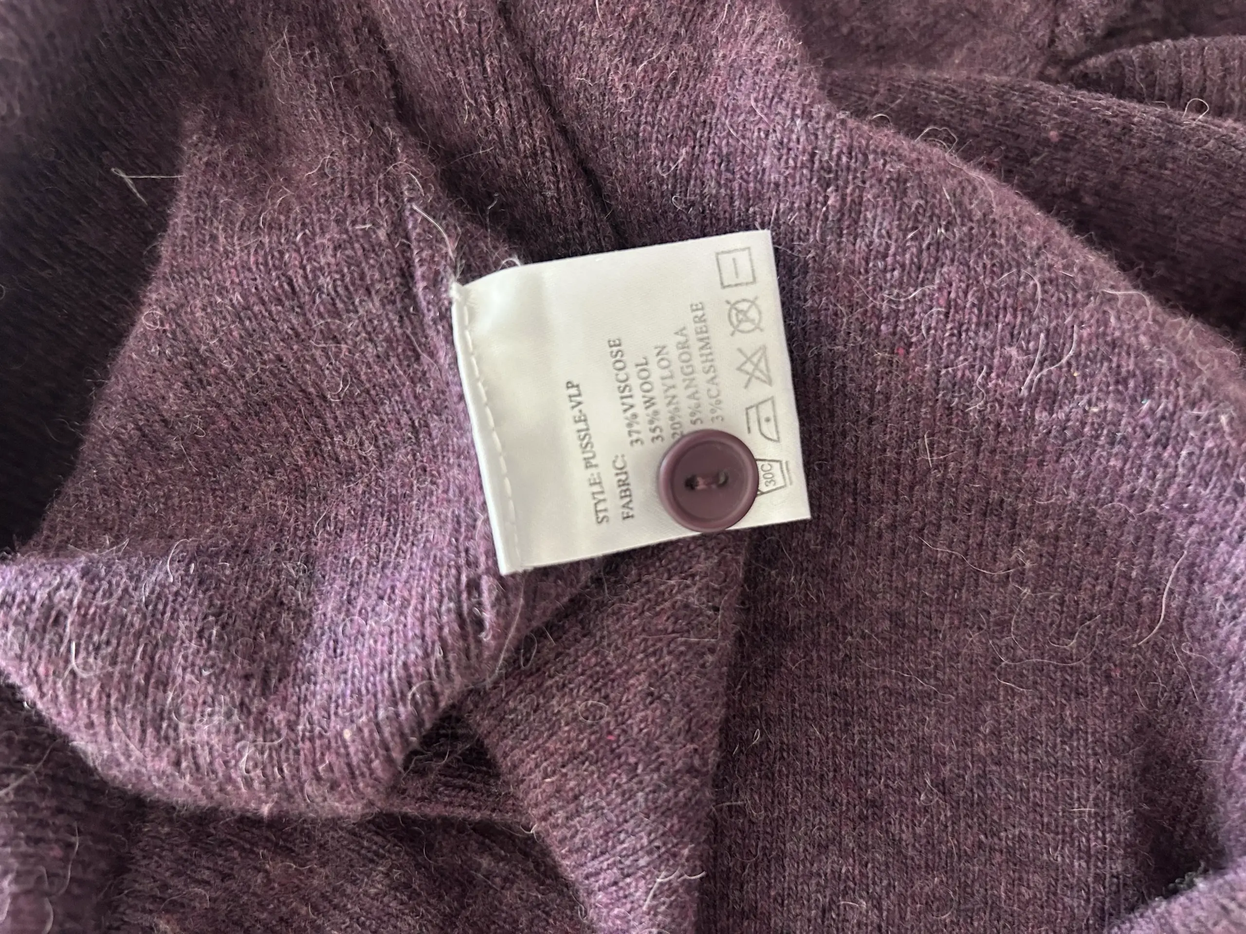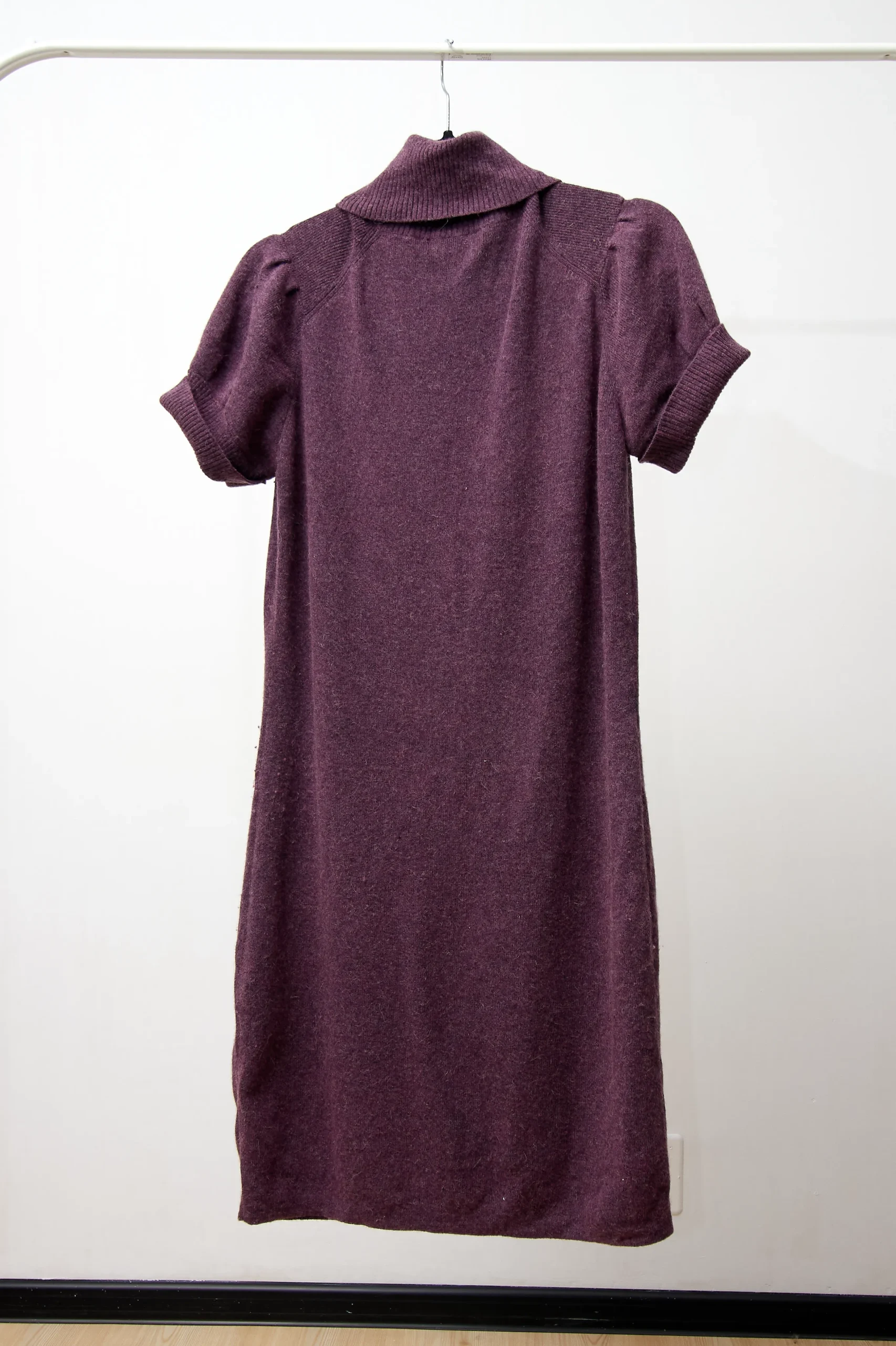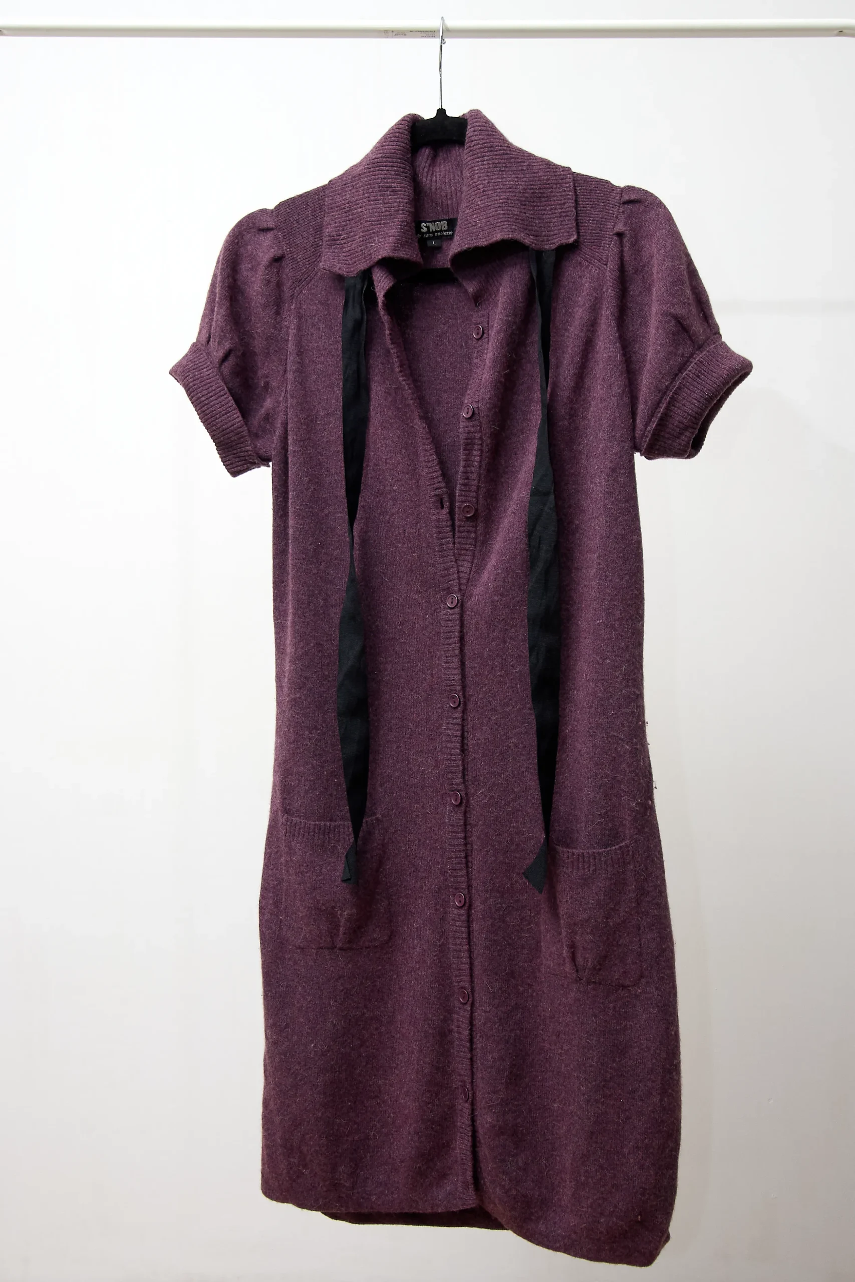 Sweater dress with buttons, front pockets, short sleeves. 35% wool, 37% viscose, 20% nylon, 5% angora, 3% cashmere. Length 97cm, waist up to 100cm.