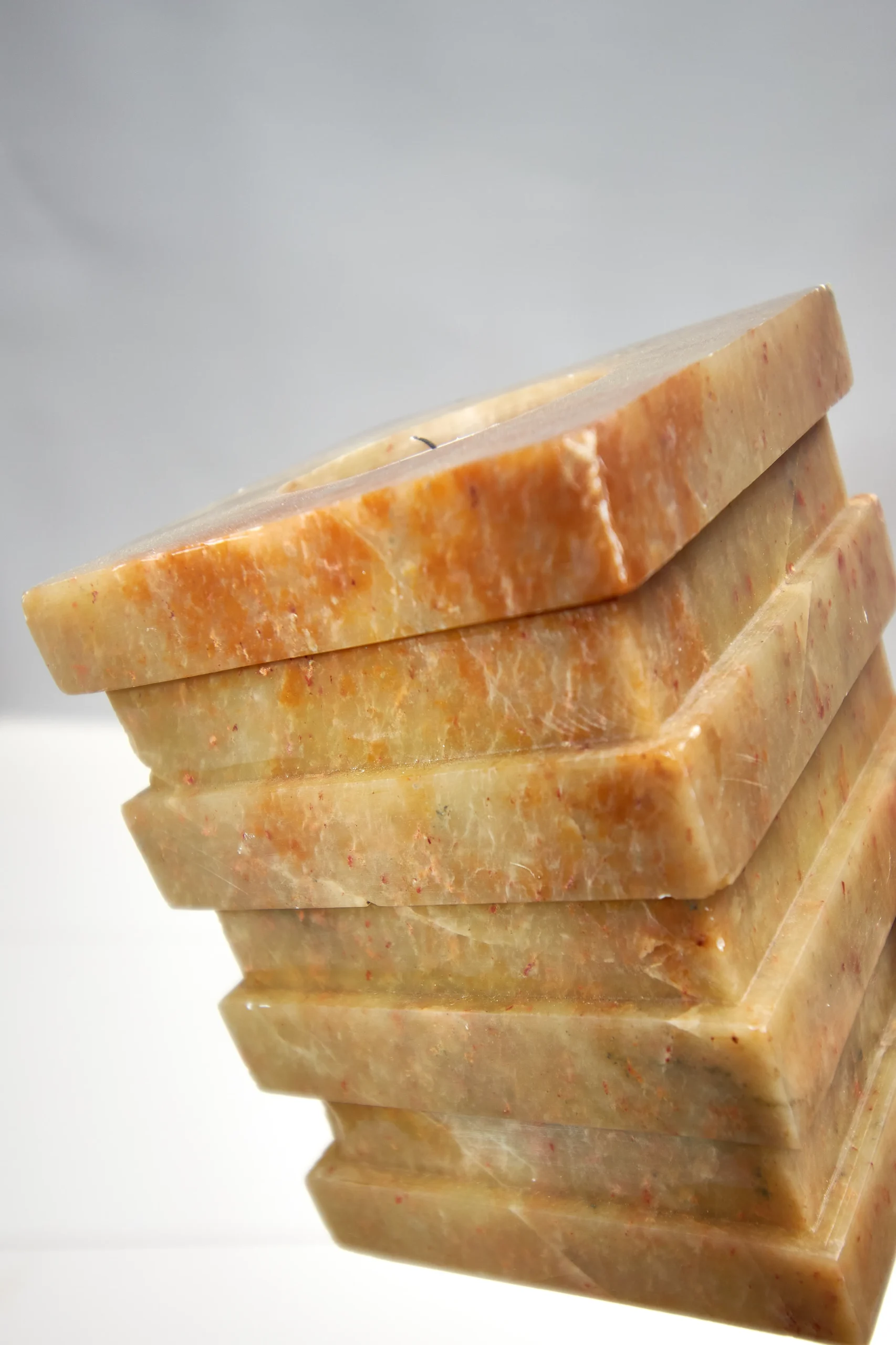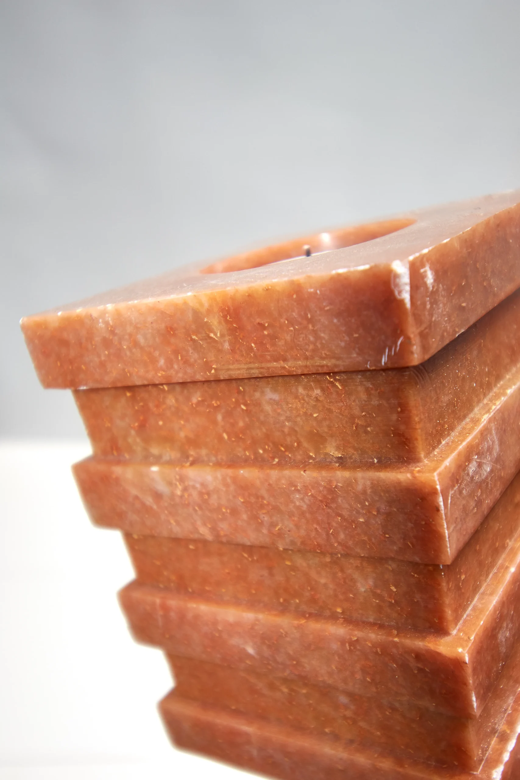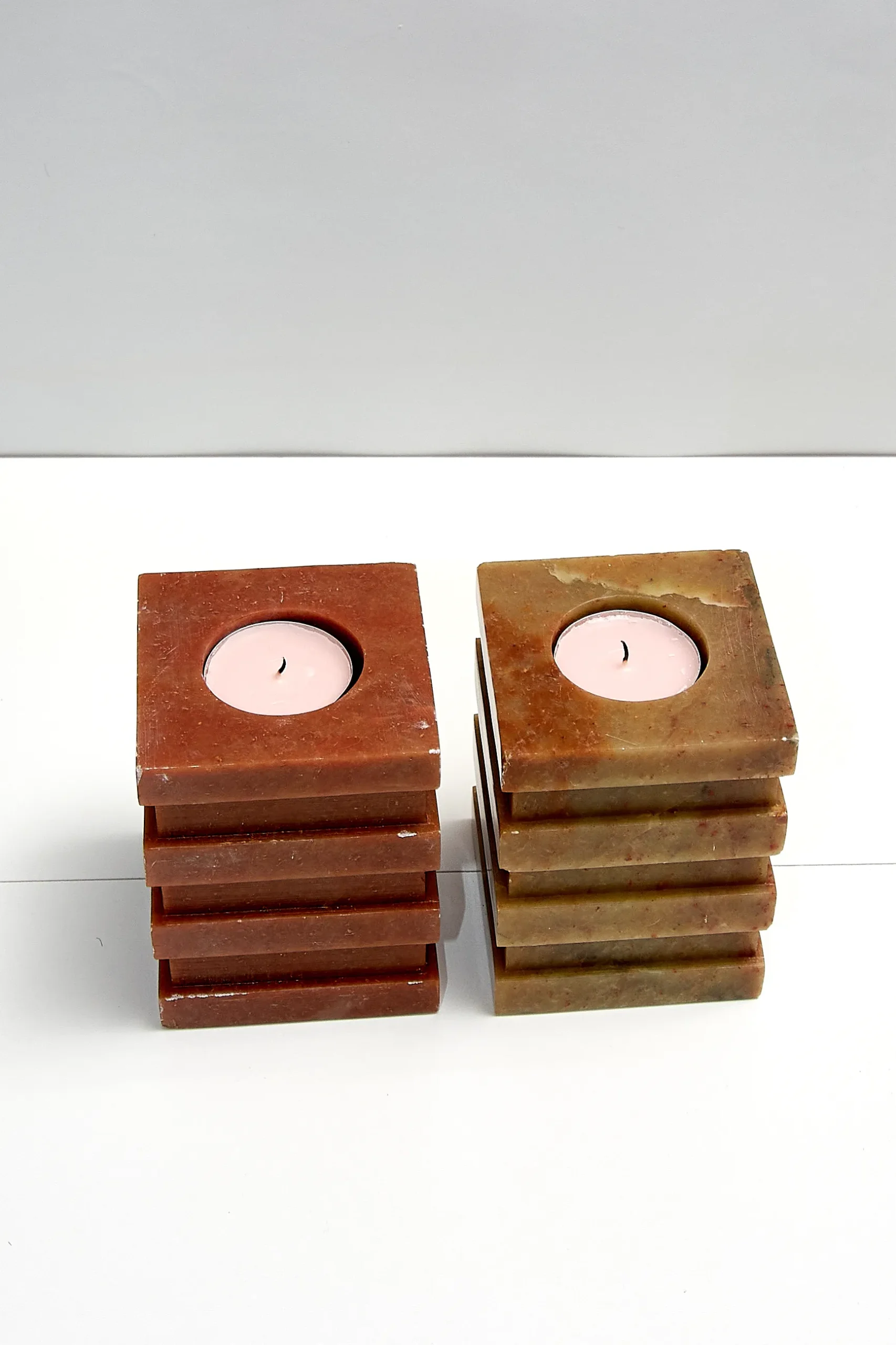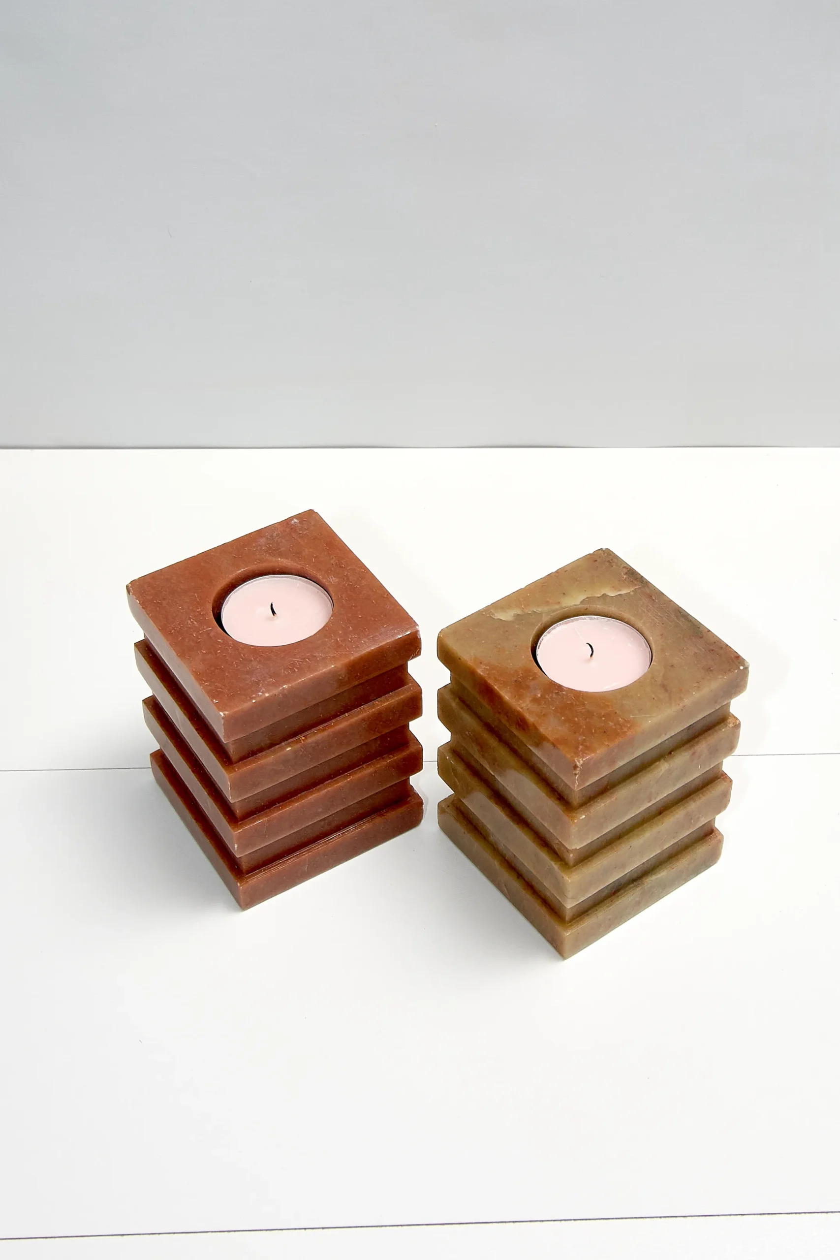 Vintage stone candle holders with geometric design. Heavy- 1,5kg each. 10cmx7,5cm.