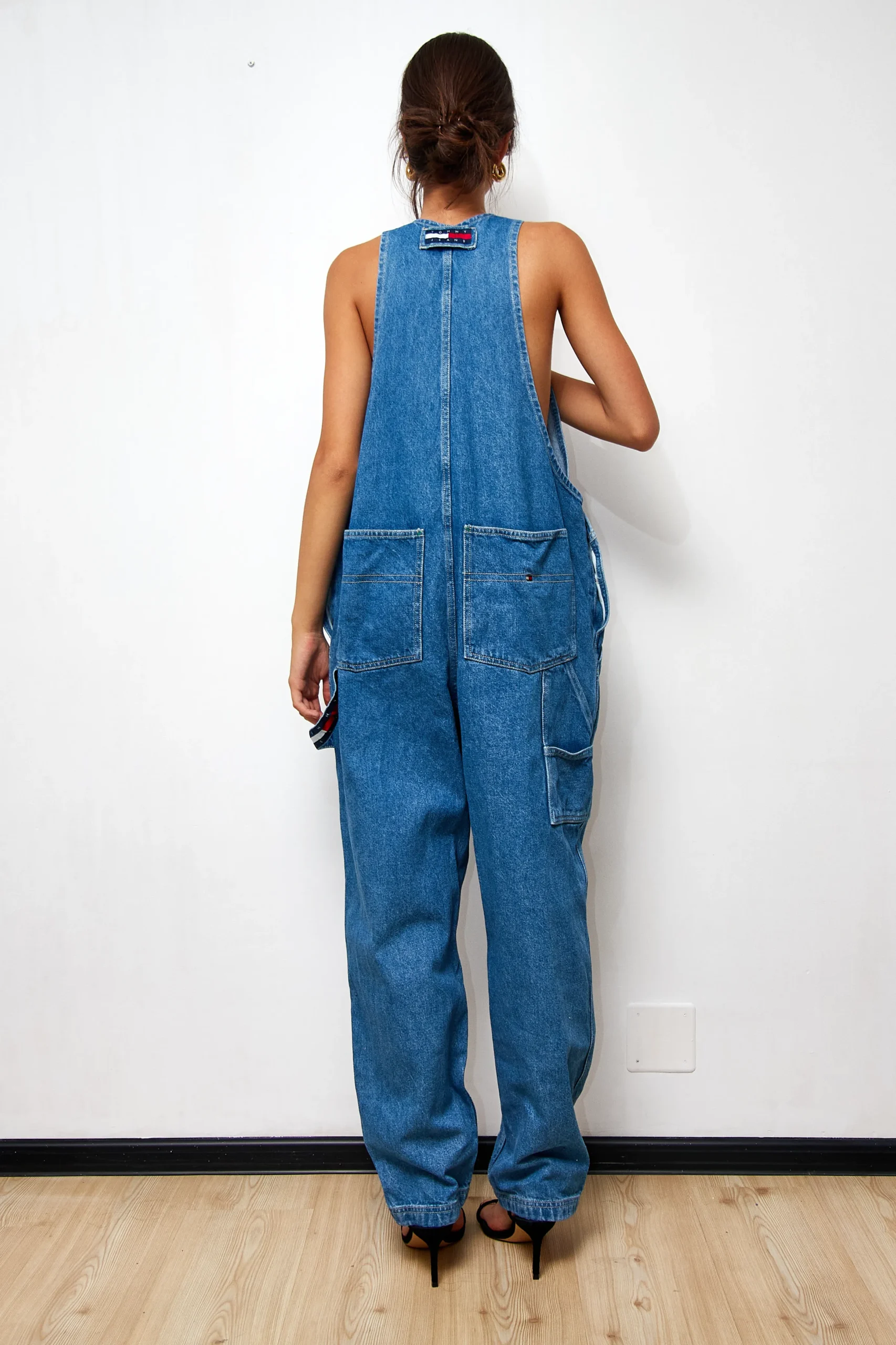 Vintage denim overall 90’s dungaree with adjustable straps, length 150cm. 100% cotton.