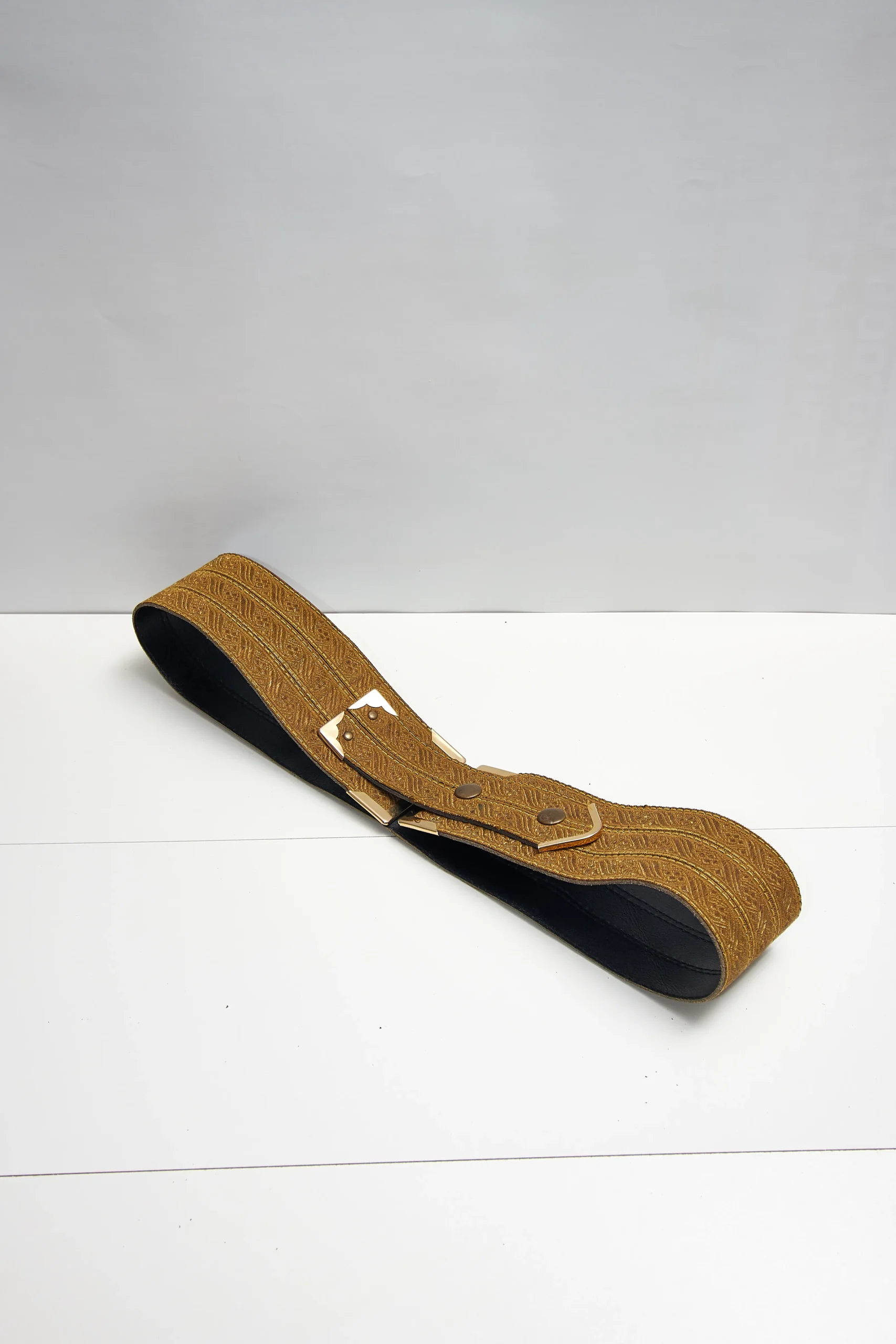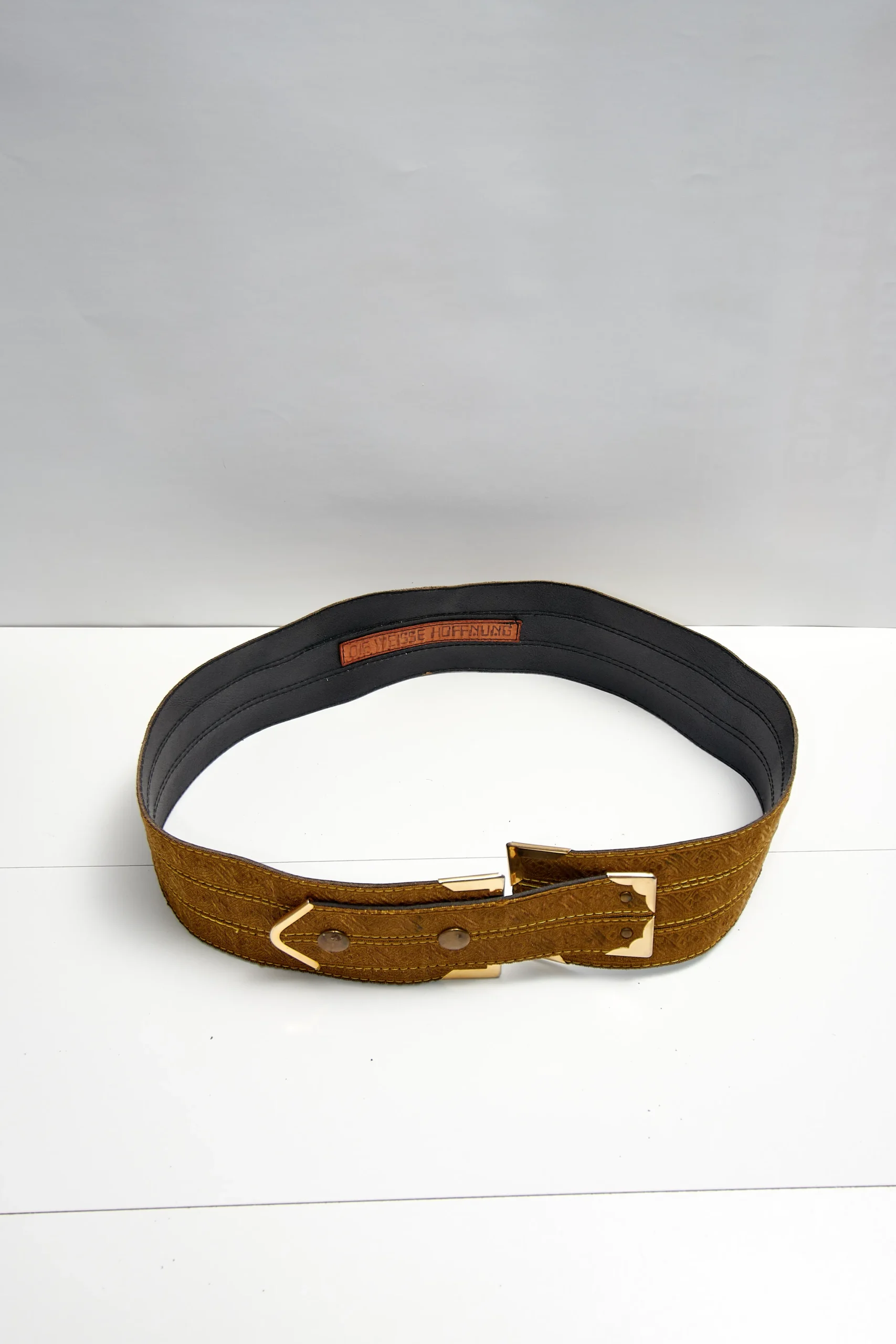 Vintage Kaki Hoffnung belt with metallic details, 100cm length, 7cm wide.