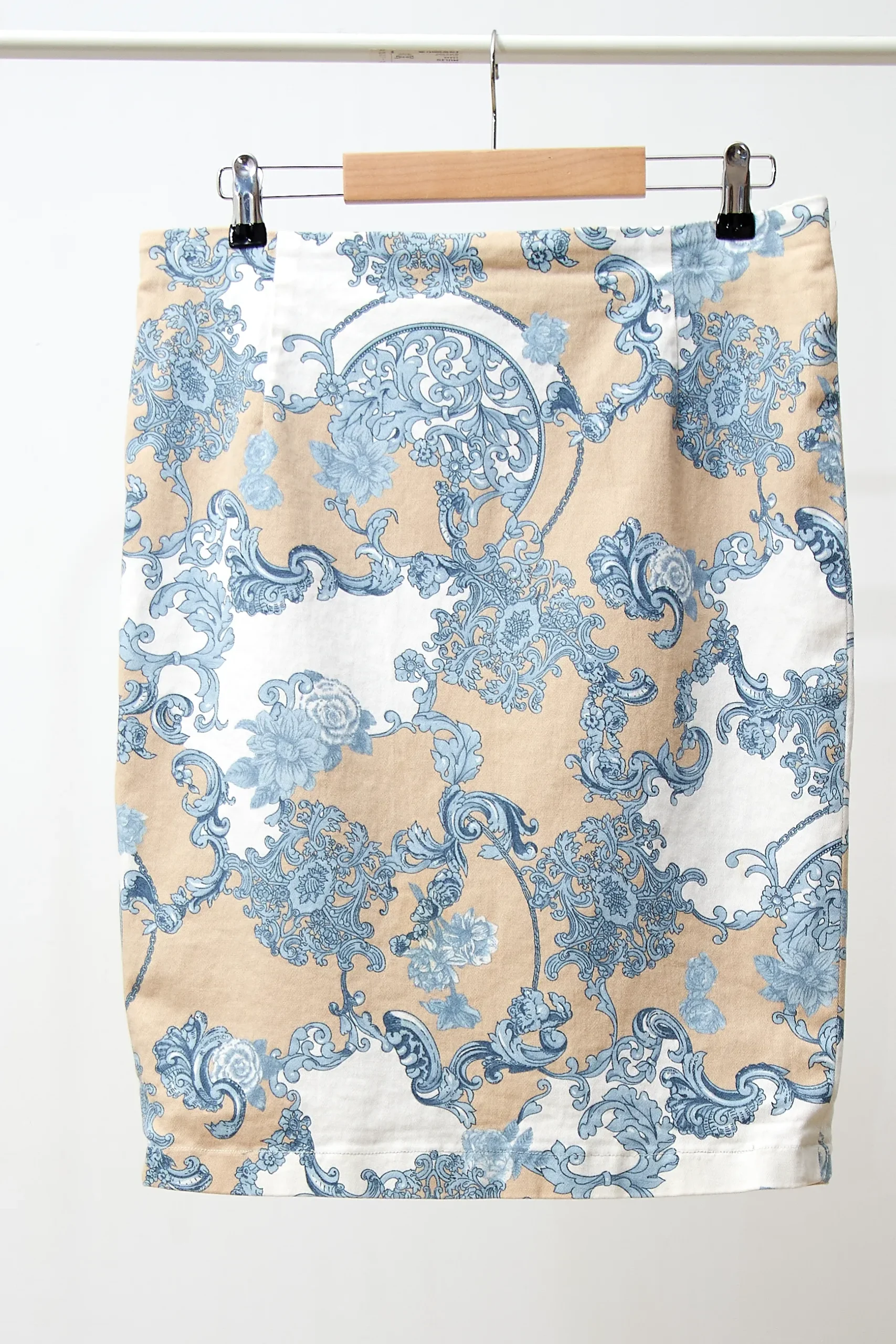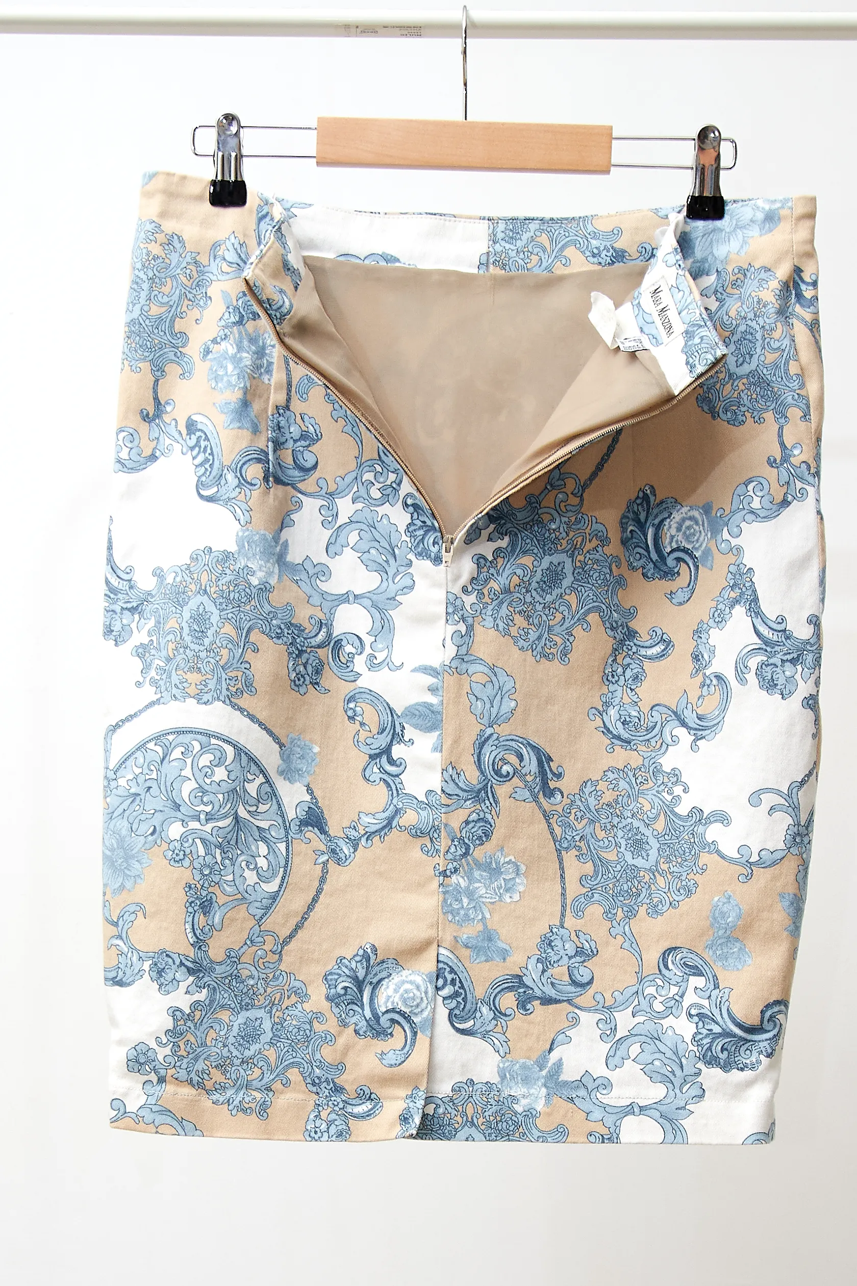 Vintage cotton skirt, fully lined, with back zip closure, waist 86cm, length 56cm. Size 46 on the label, but corresponding to a 40-42.