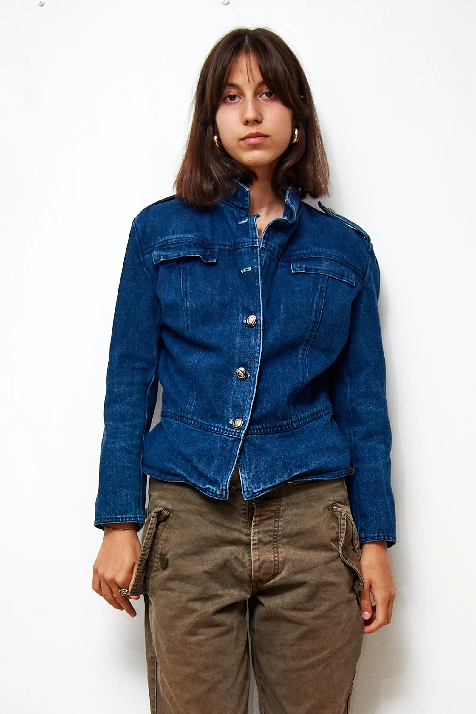 Vintage Denim Jacket with metallic buttons, Length 60cm, Bust 92cm. 100% cotton.