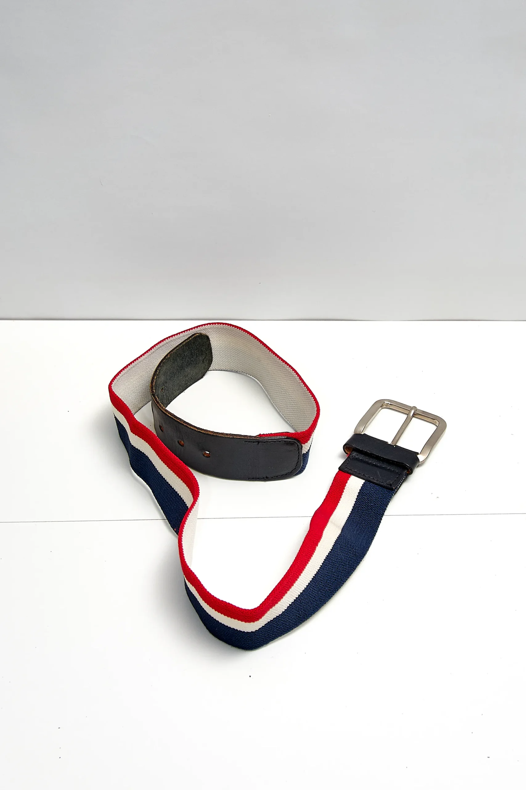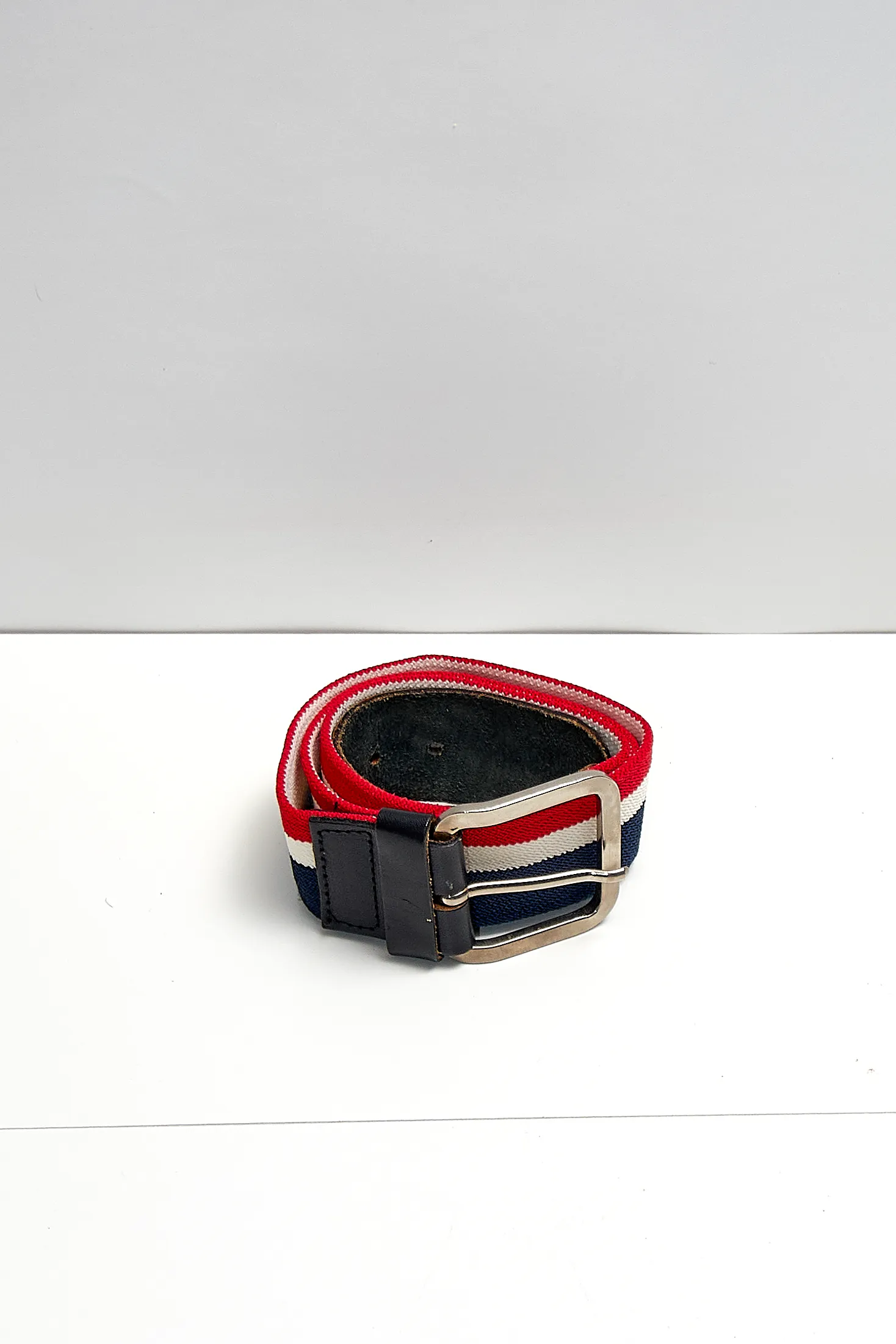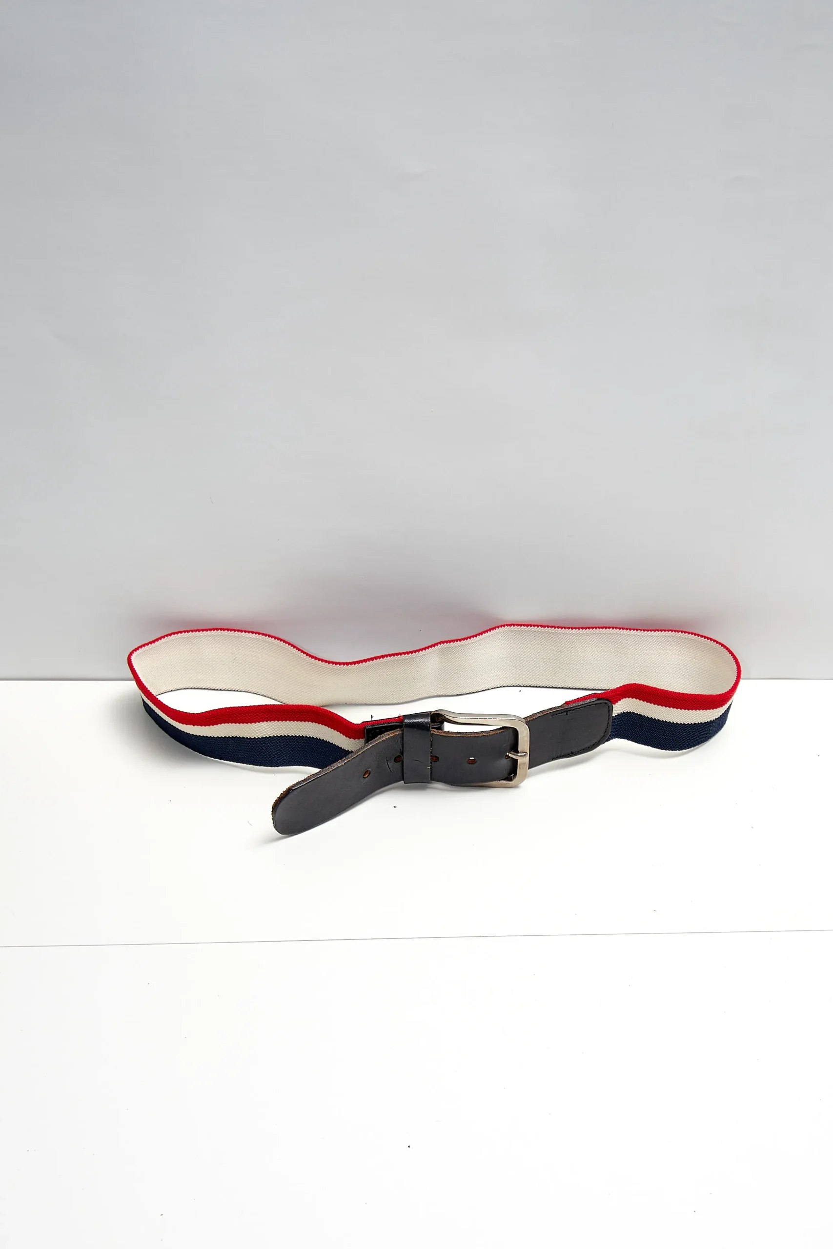 Vintage Elastic and Leather Belt, 90cm length, 4cm wide, with silver buckle.