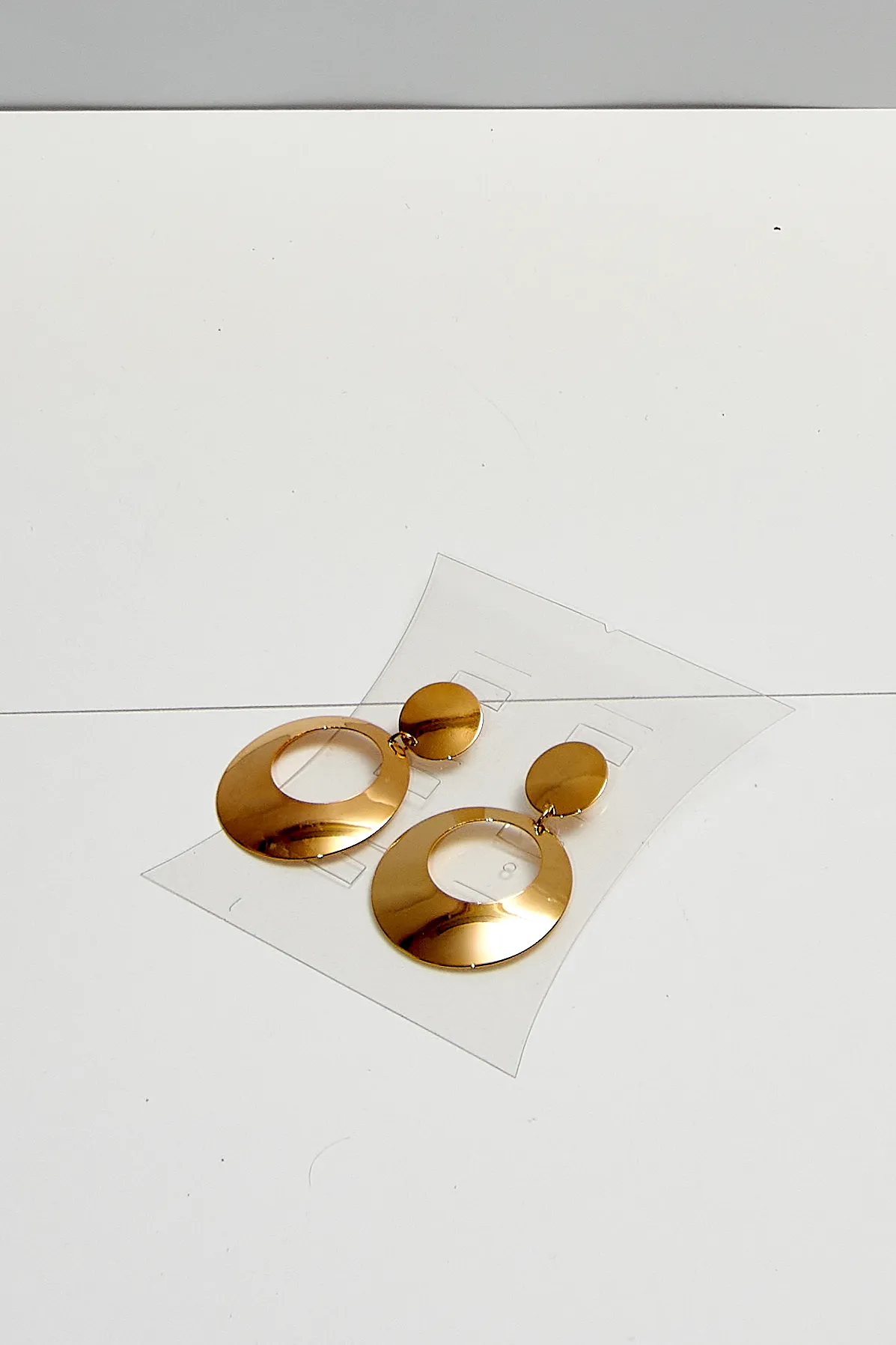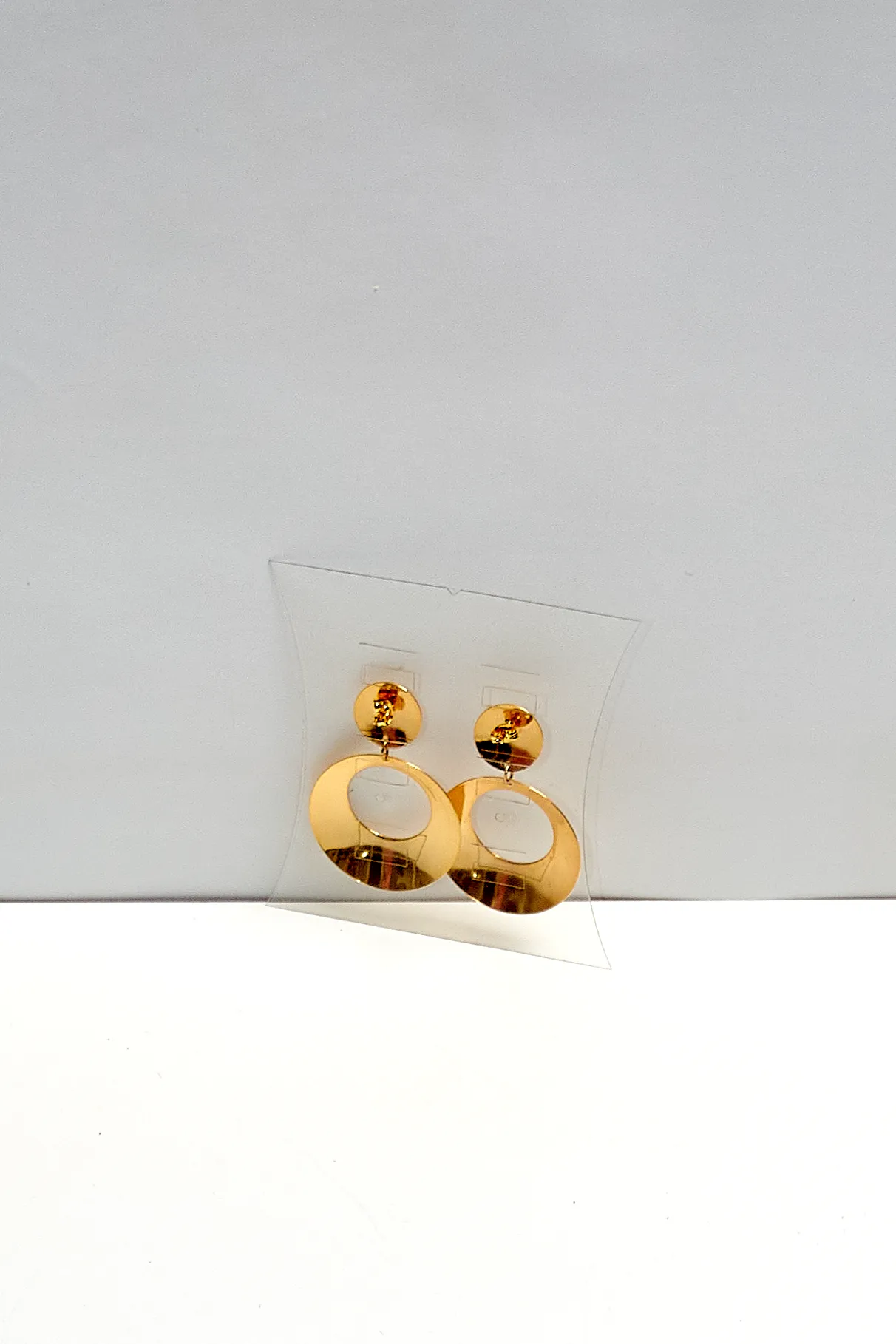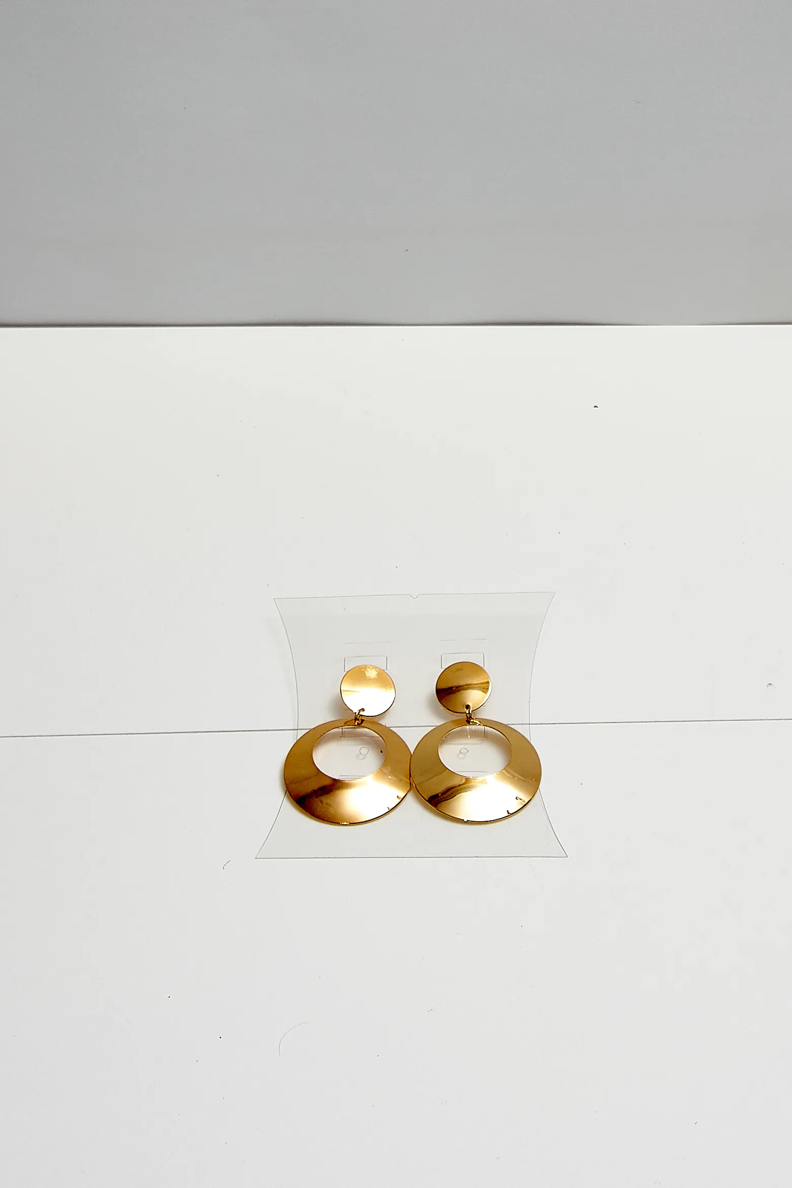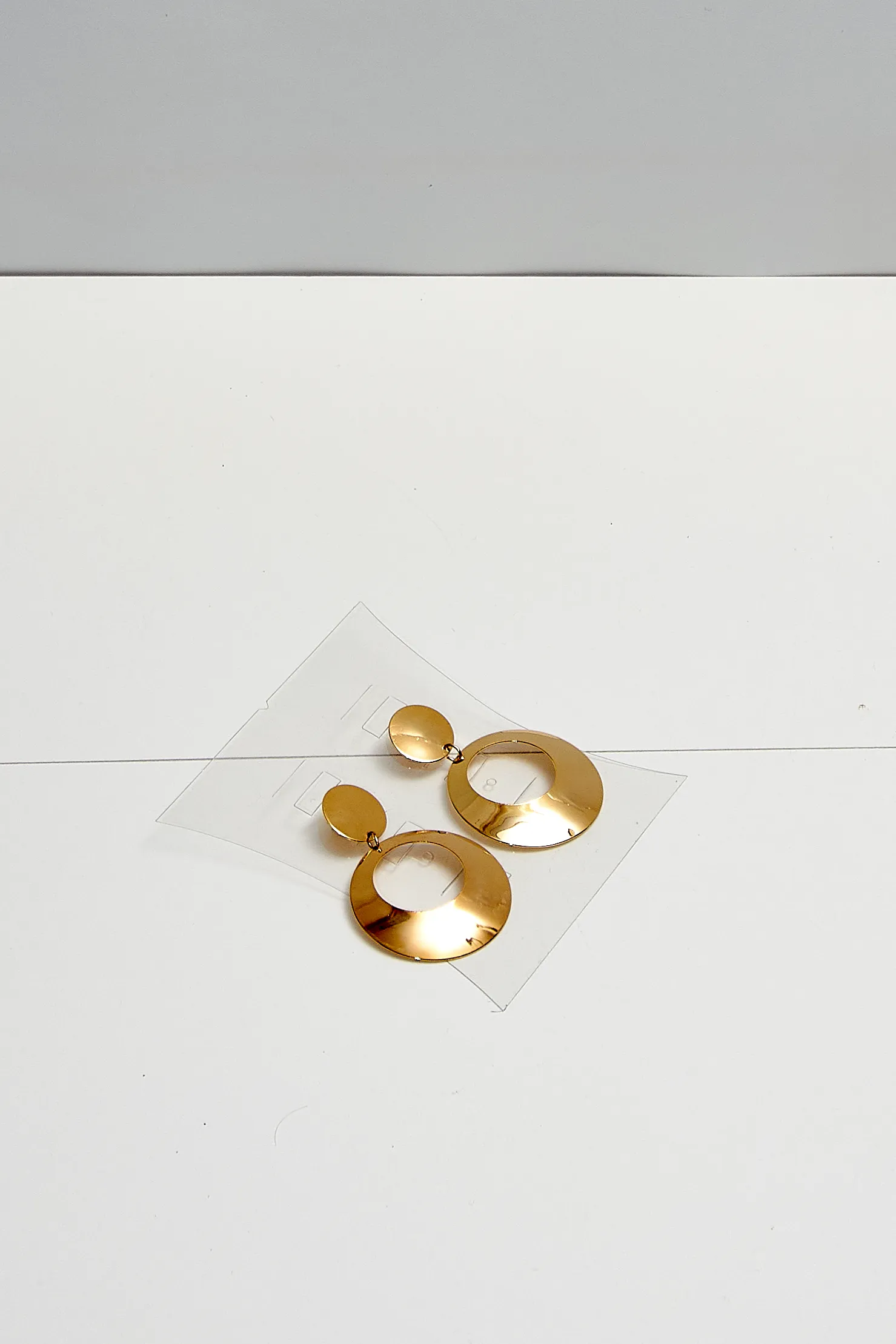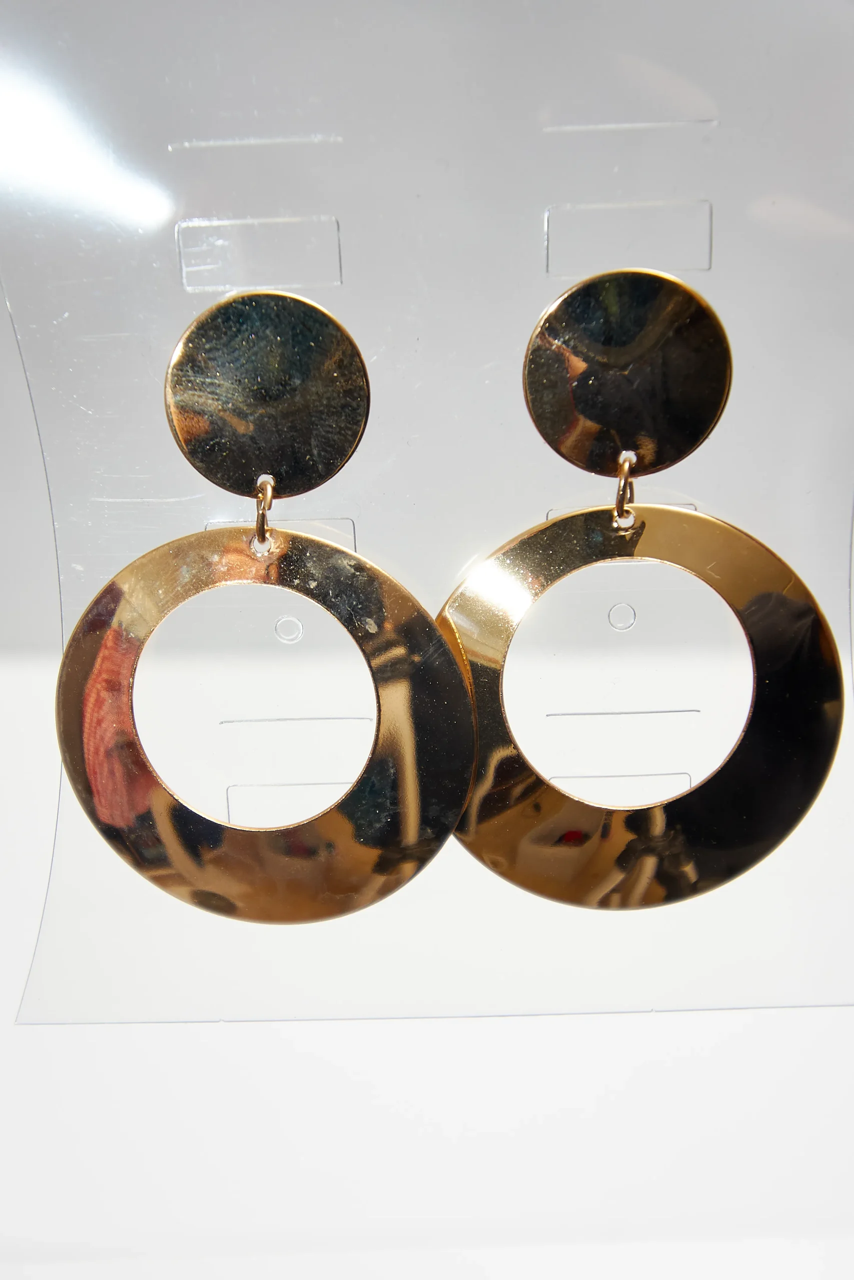 Vintage Gold Tone Dangle Earrings with a shiny finish. 4cm diameter.