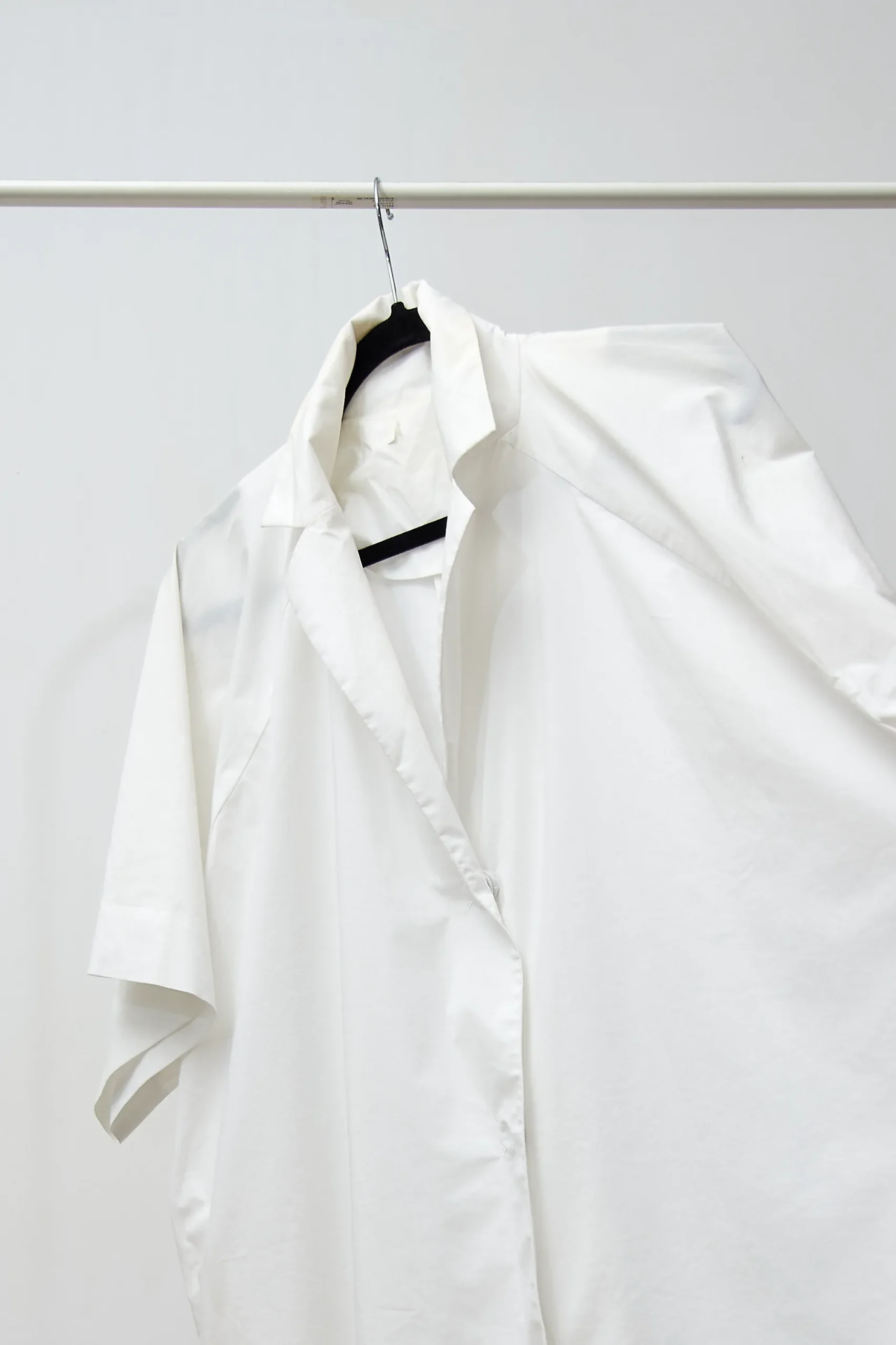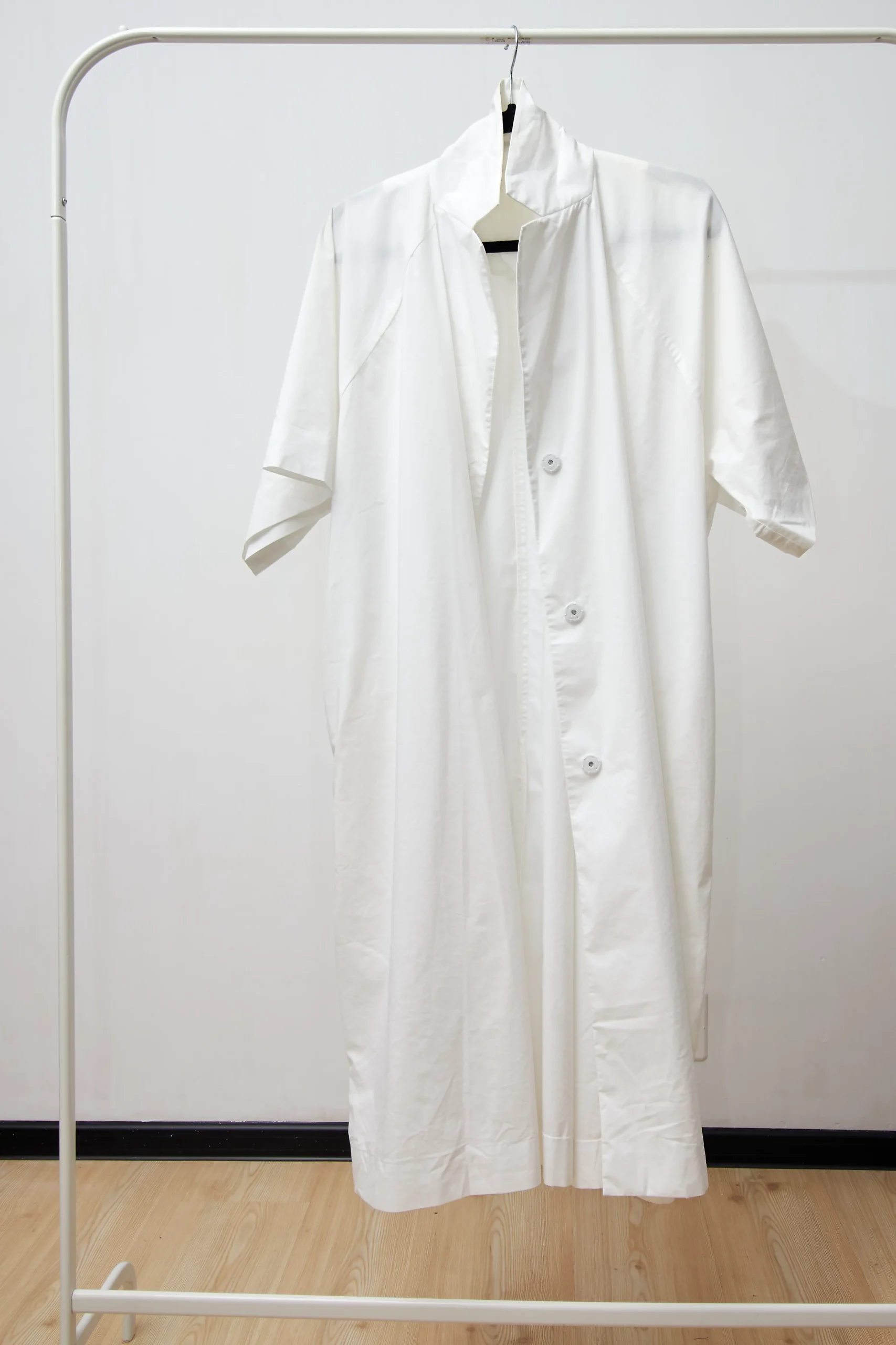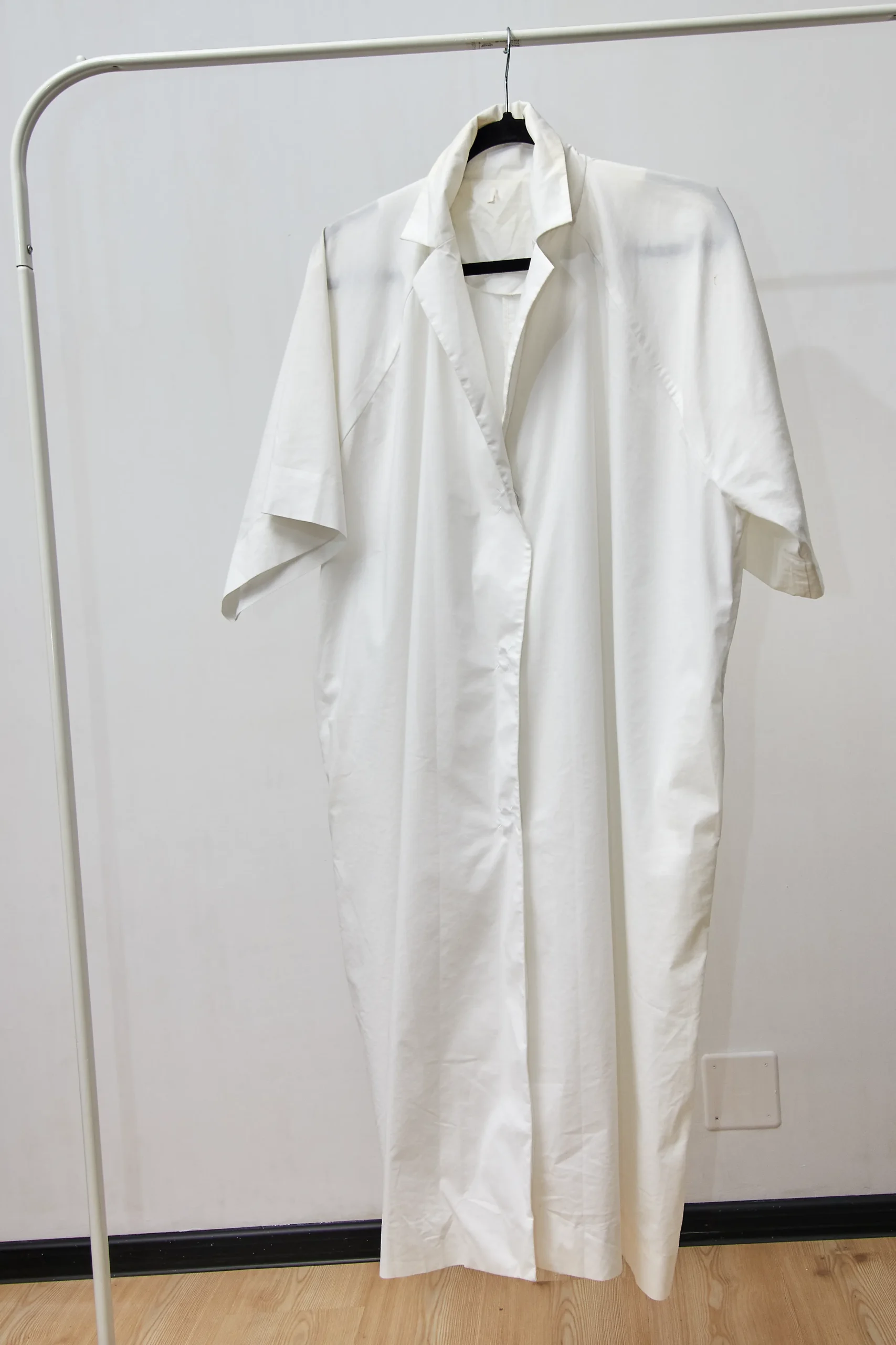 Shirt dress with snap closure and short sleeves. 105cm length. Coming from a COS stock, labels cut. Most likely cotton.