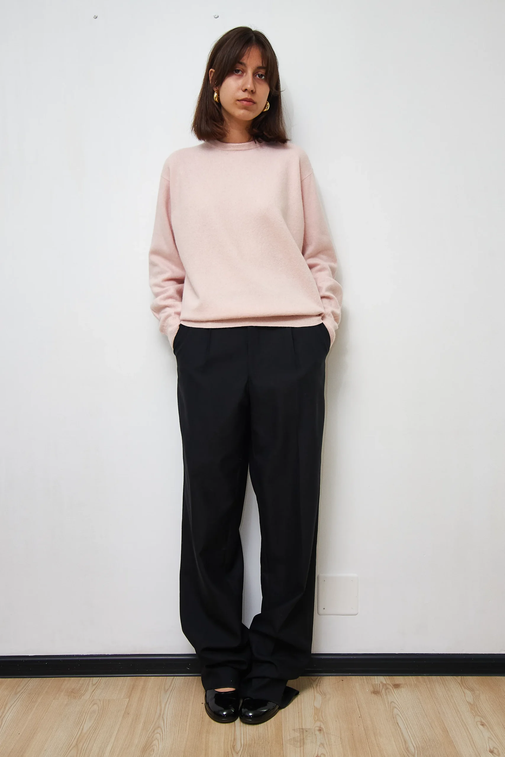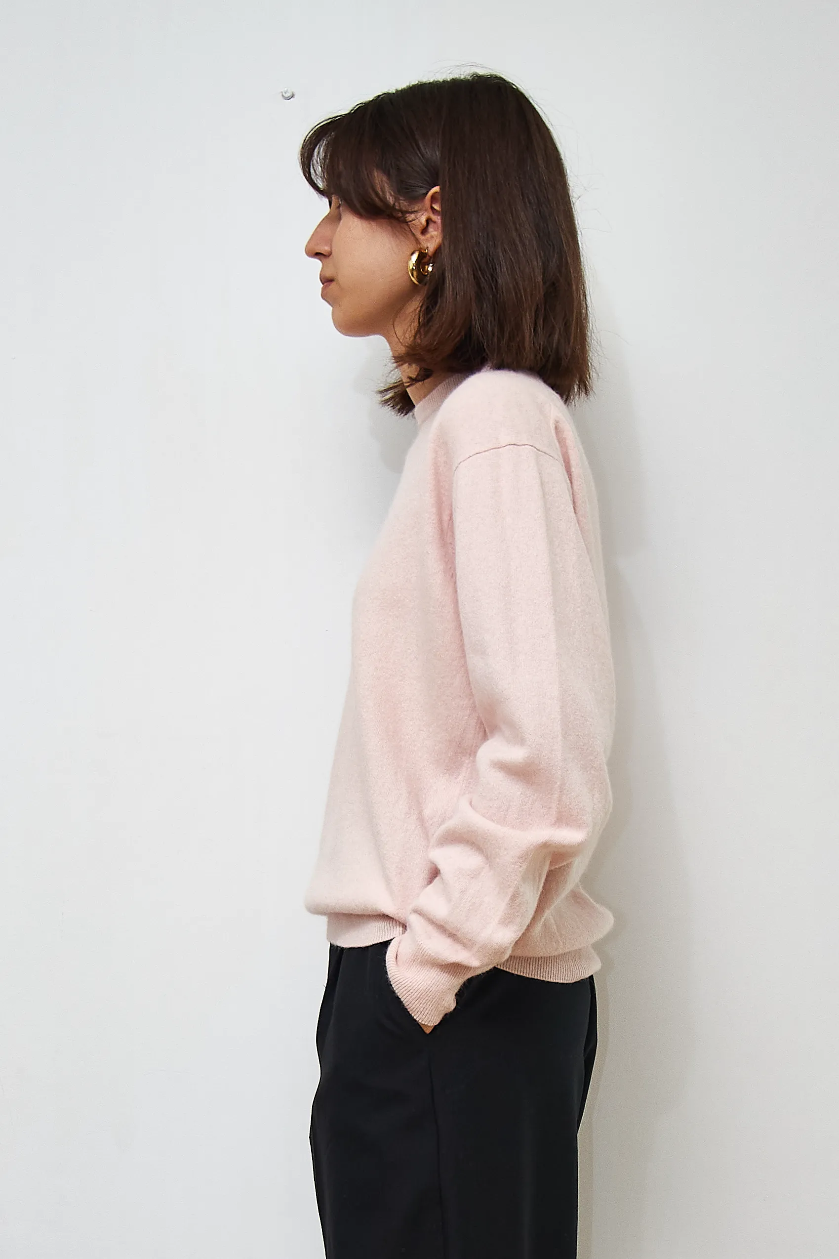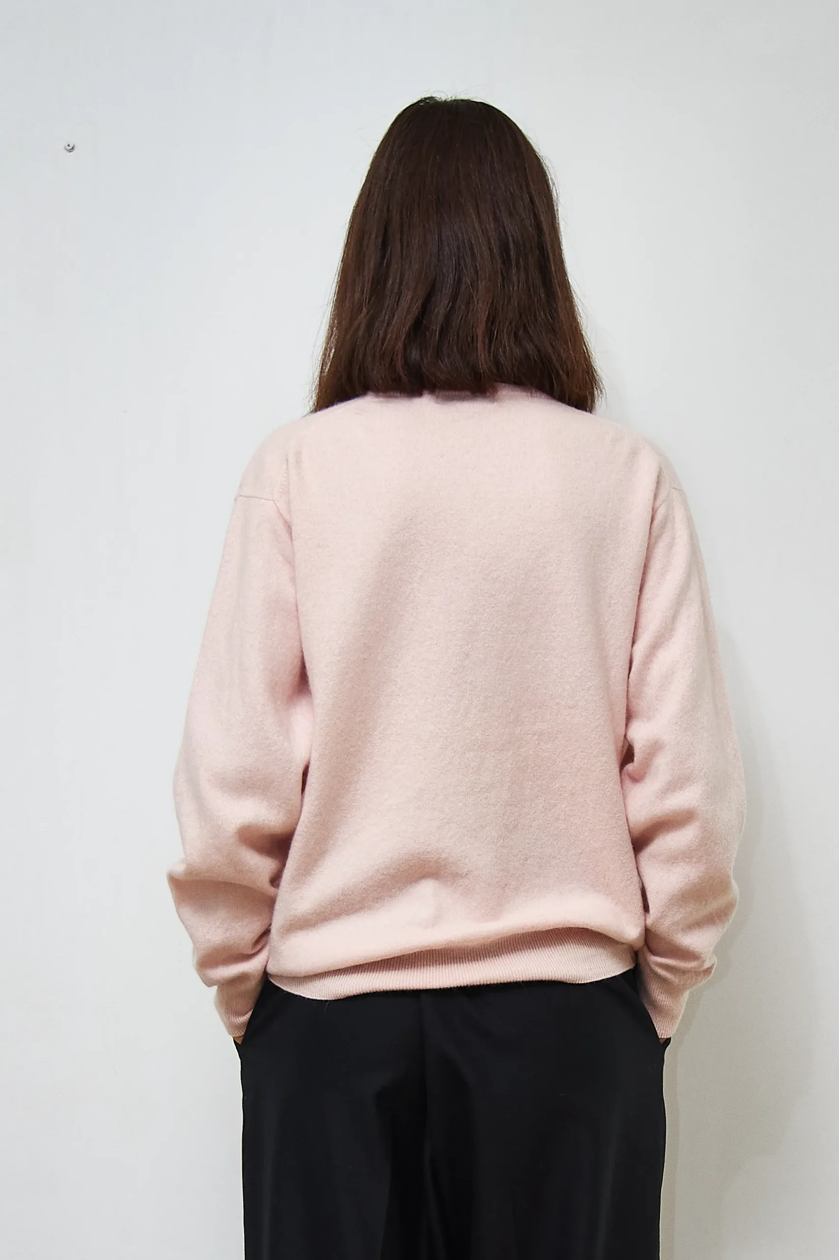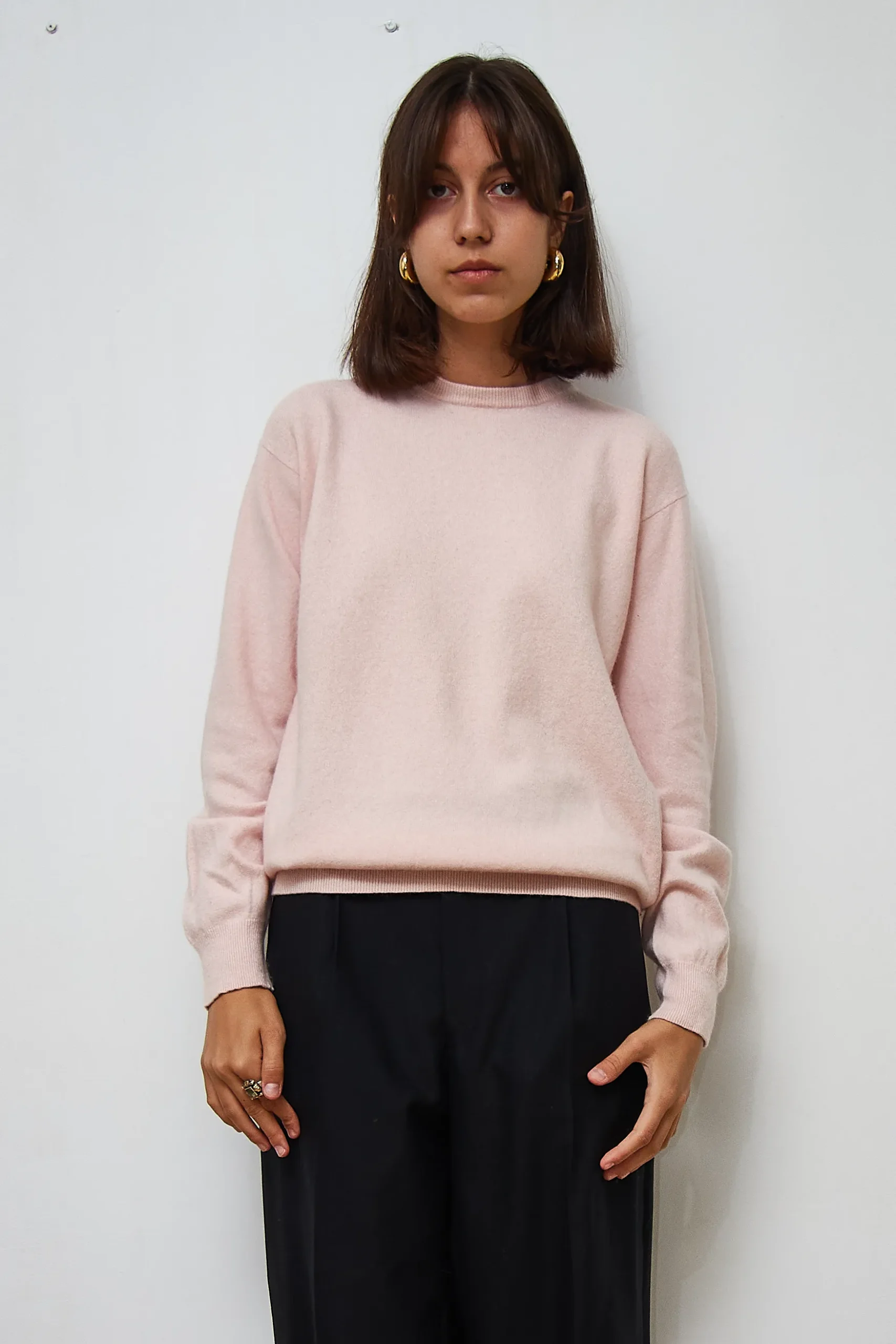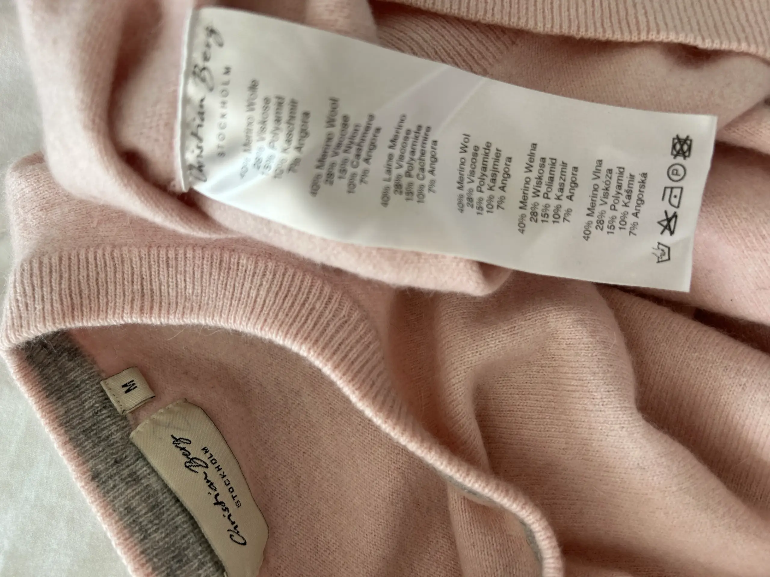 Light pink sweater classic cut. 40% merino wool, 28% viscose, 15% polyamide, 10% cashmere, 7% angora. Length 62cm, Bust 110cm.