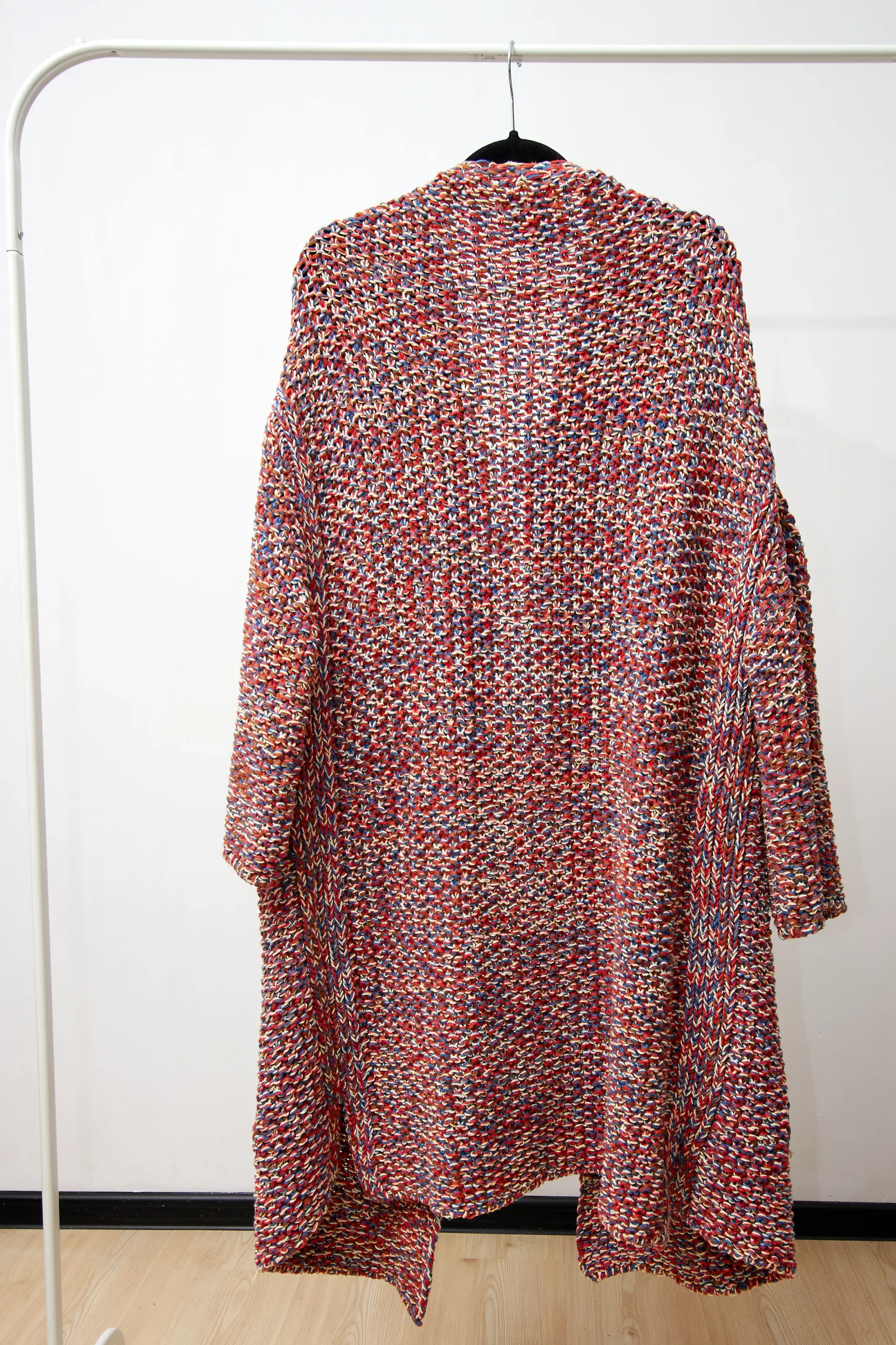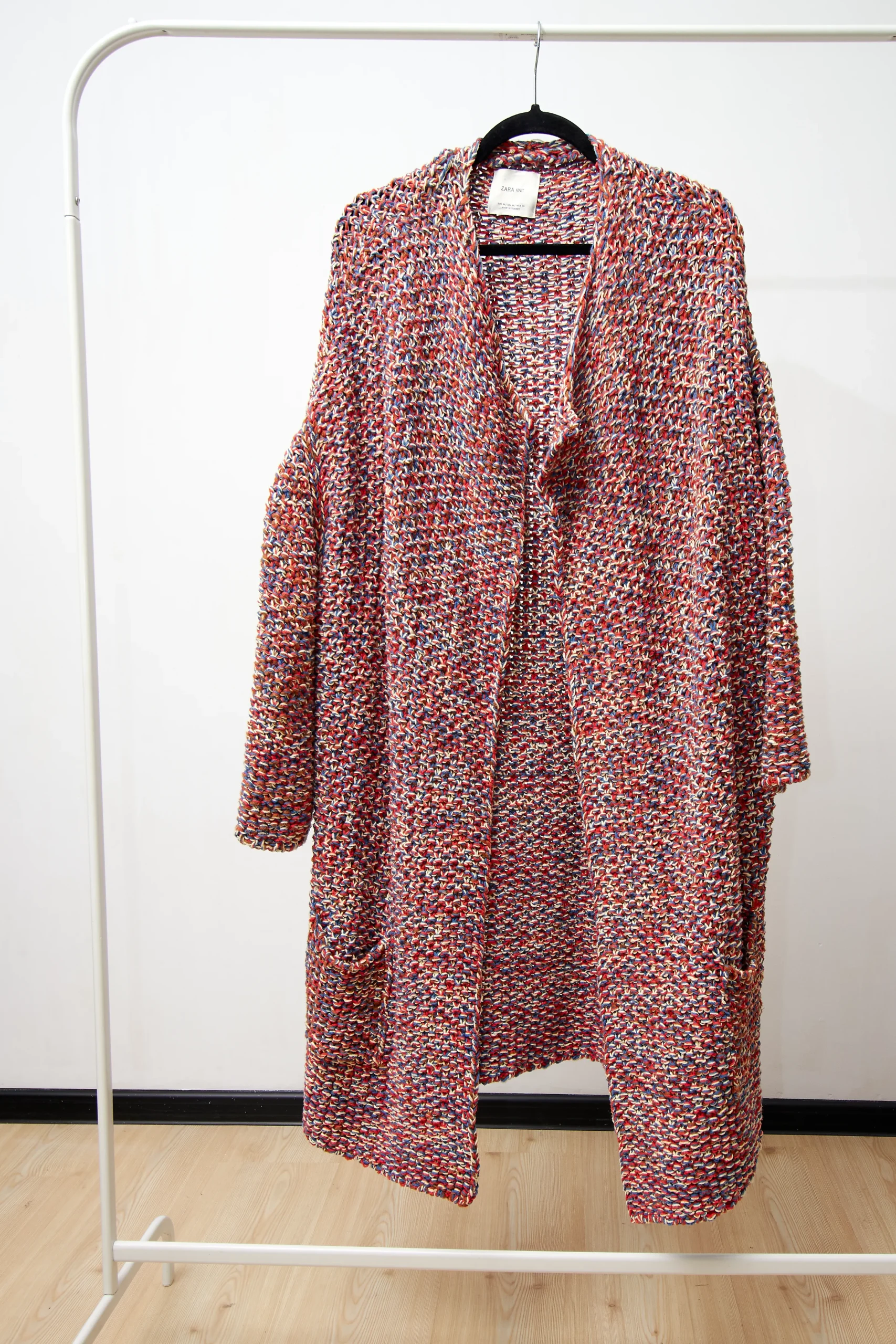 Knit heavy knit cardigan oversized, 40% cotton, 60% acryl, front pockets, length 107cm.