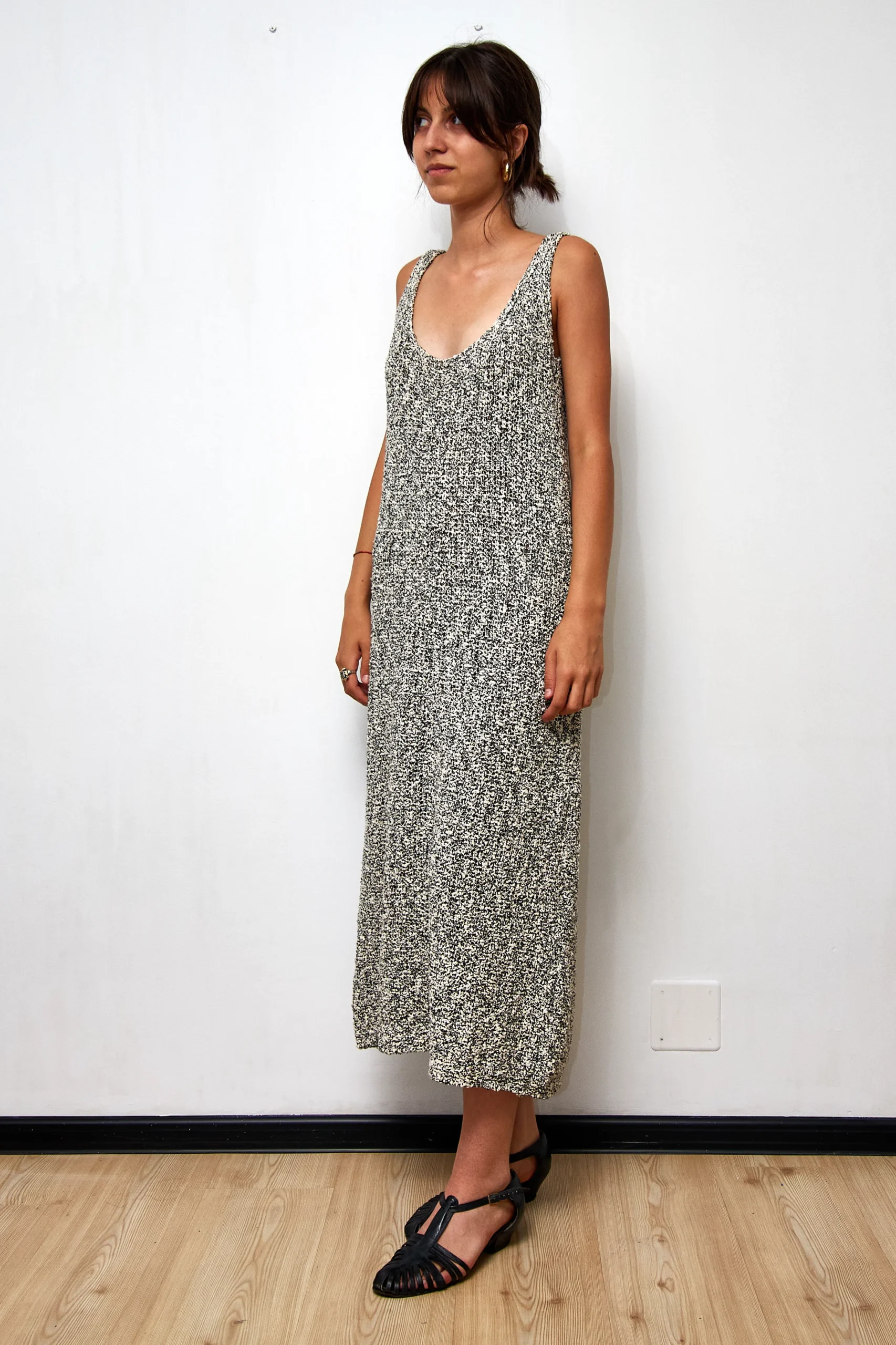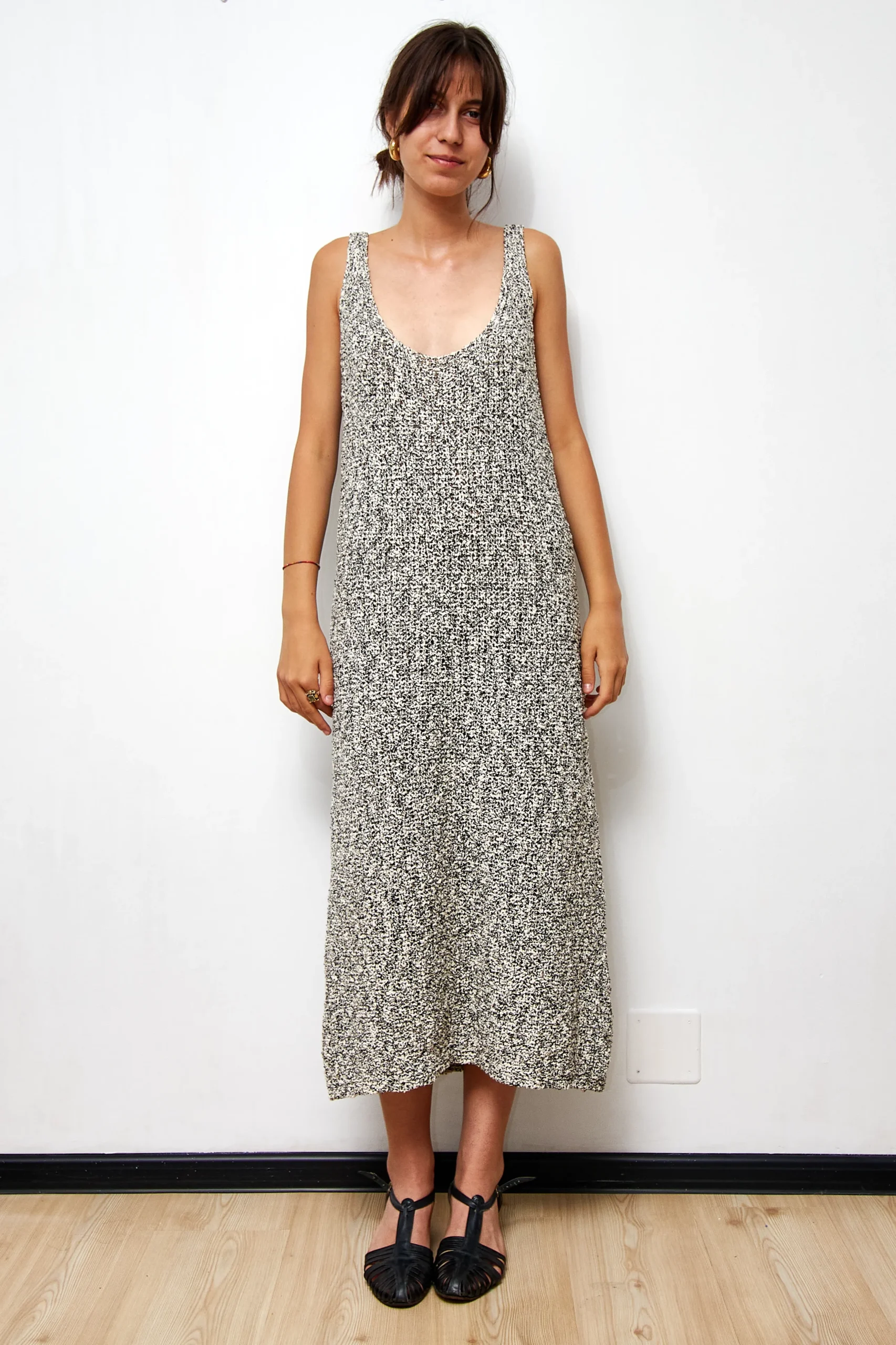 Zara dress in knitted cotton. 79% cotton, 13% polyamide, 8% acrylic, 125cm length.